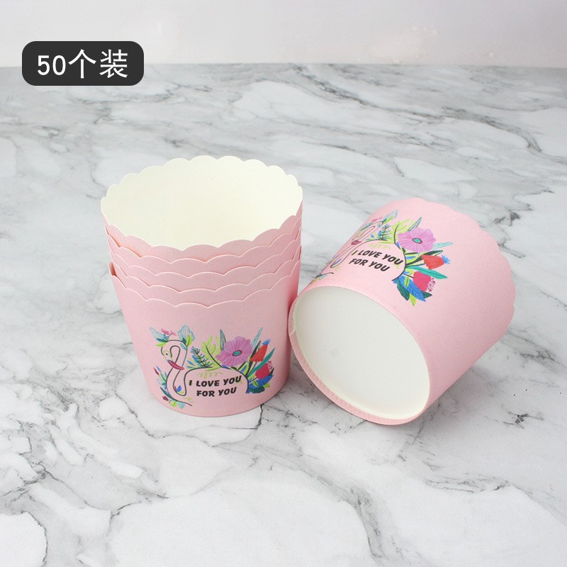 • 종이컵 - 분홍색과 녹색 다섯잎 꽃 50개/팩