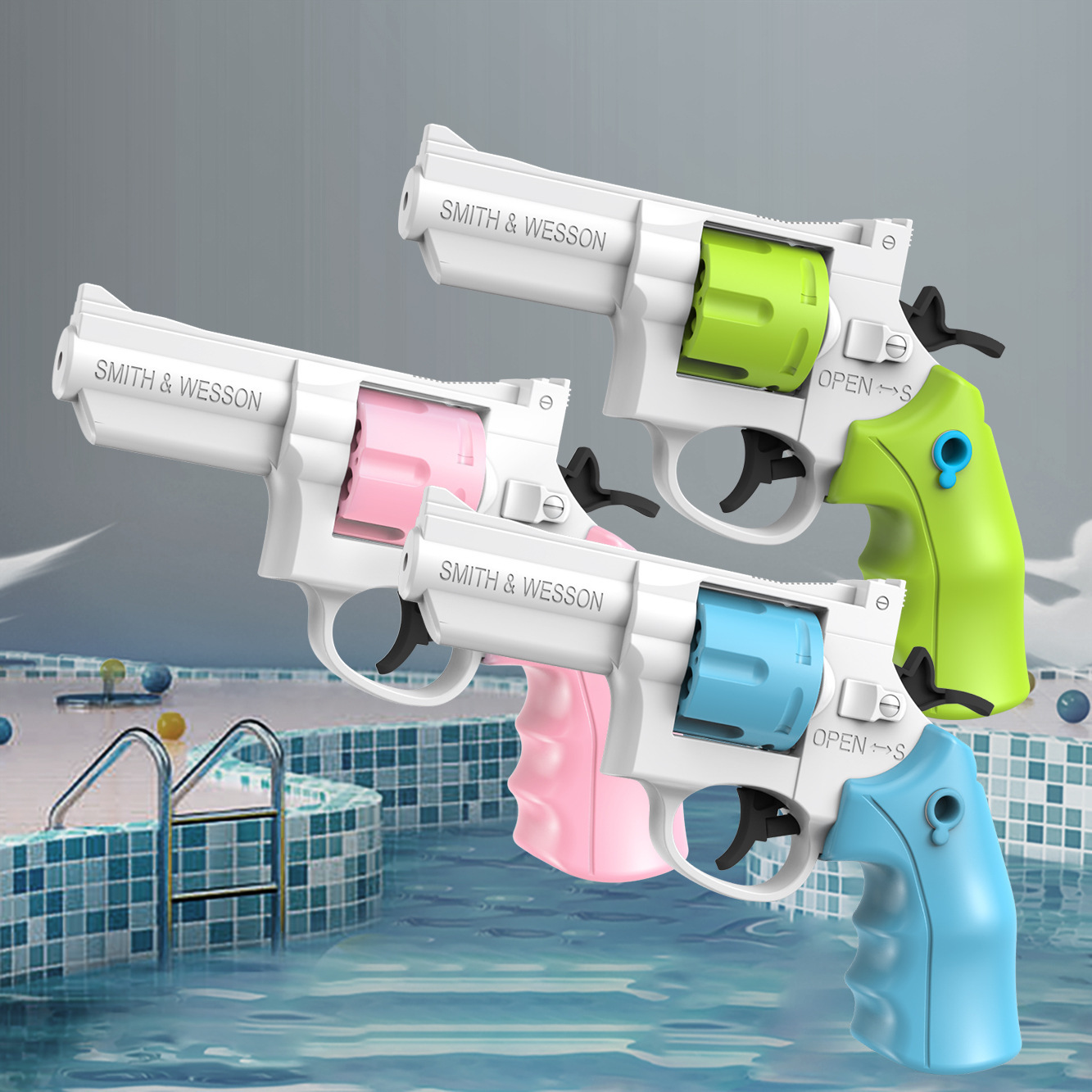 국경 간 인기 글록 물총 자동 리필 수동 연속 발사 리볼버 물총 물 싸움 및 물놀이 어린이 장난감스토어 가기