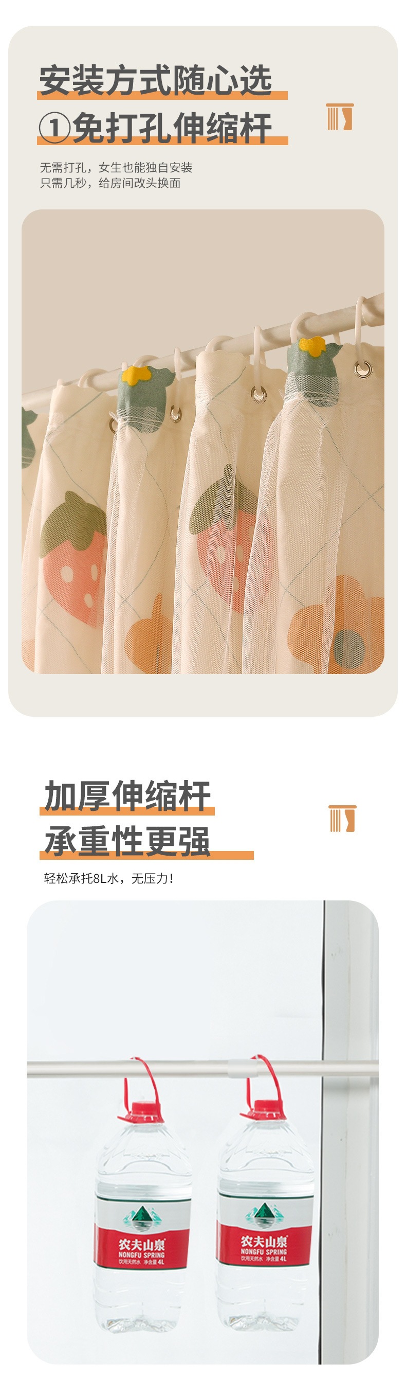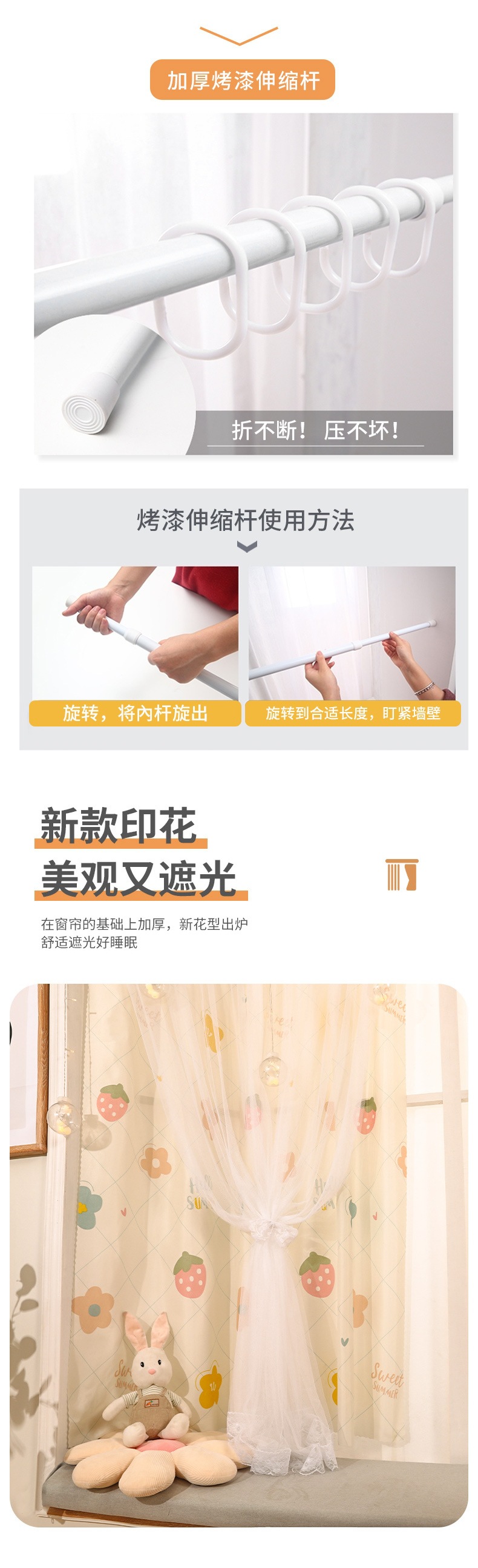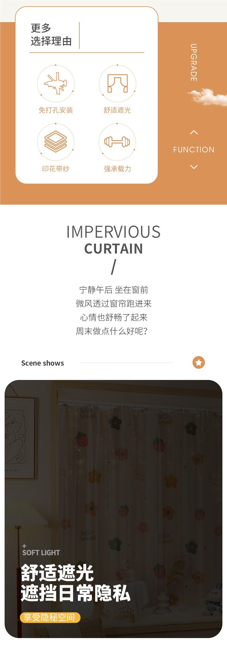 펀치 없는 커튼 원단, 빛 차단 및 차양, 임대용 특수 커튼, 반커튼 후크, 북유럽 심플 단열 및 자외선 차단 짧은 커튼스토어 가기