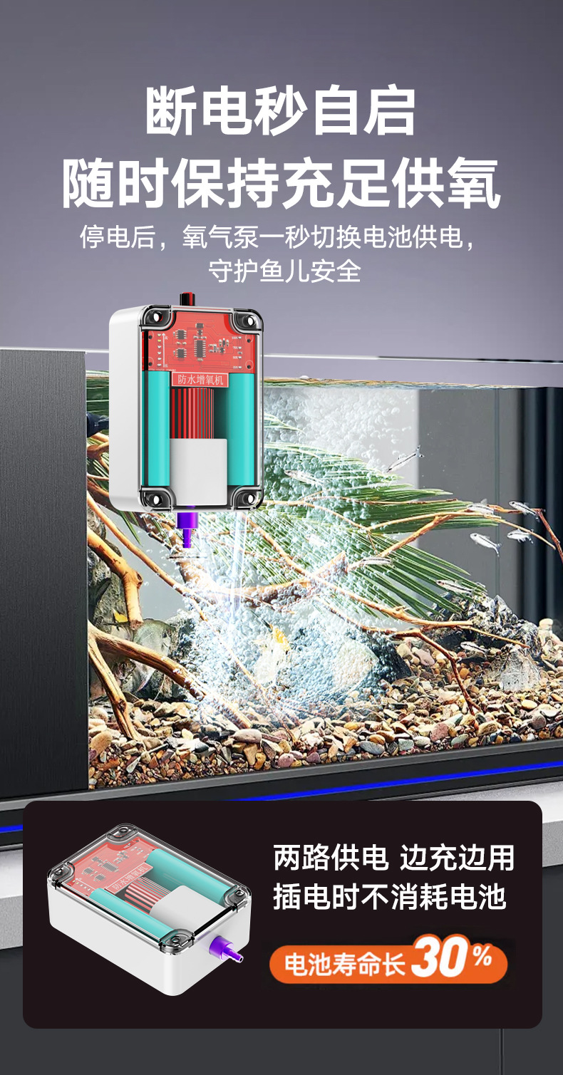 가정용 새로운 방수 산소 펌프 아크릴 투명 소재 대용량 긴 수명 야외 낚시 산소 펌프