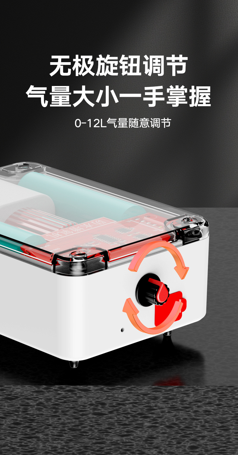 • 6000mAh 배터리, 배터리 수명 12시간, 가스 용량 6L, 구멍 6개
