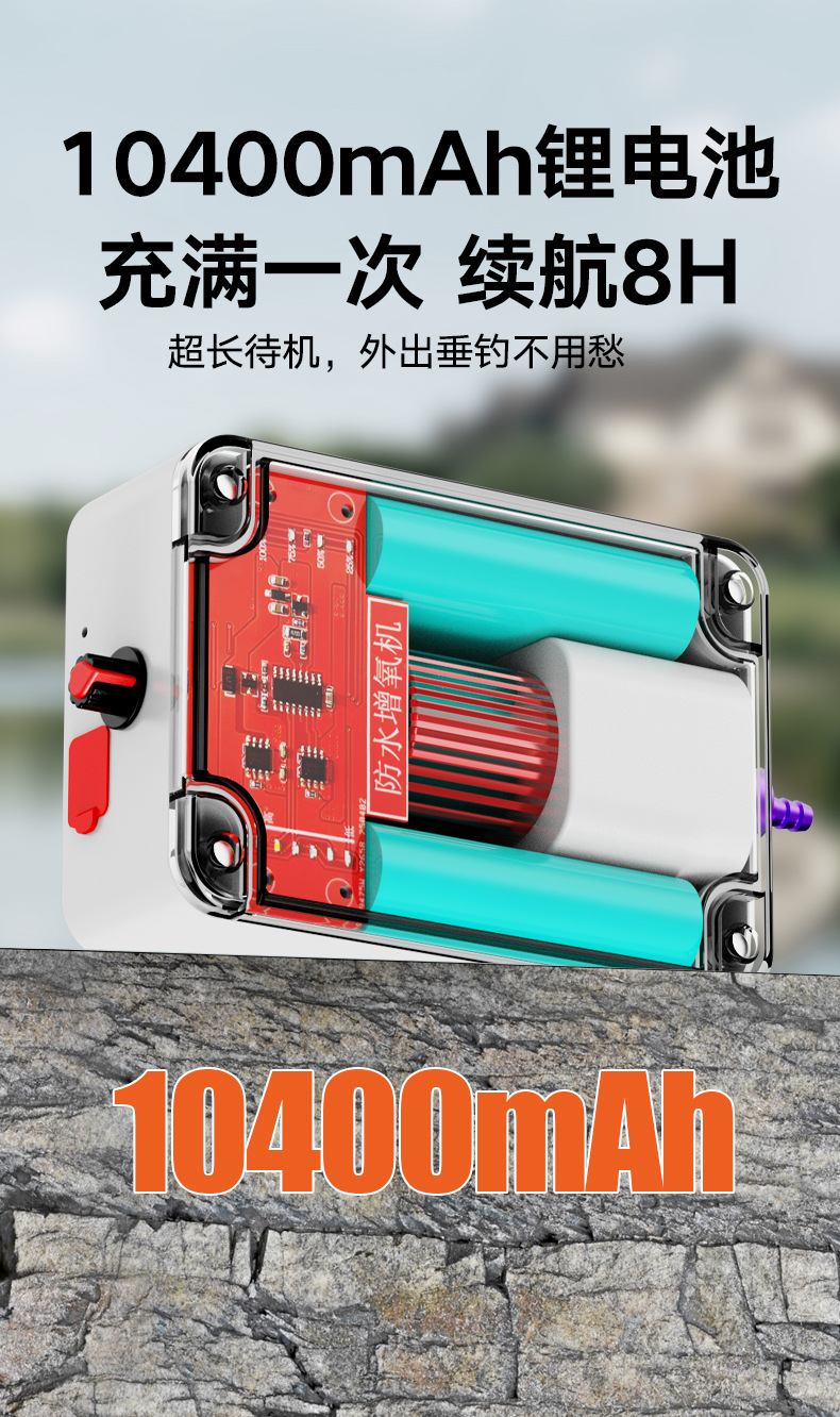 • 10400mAh 배터리, 배터리 수명 8시간, 공기 용량 8L, 단일 구멍