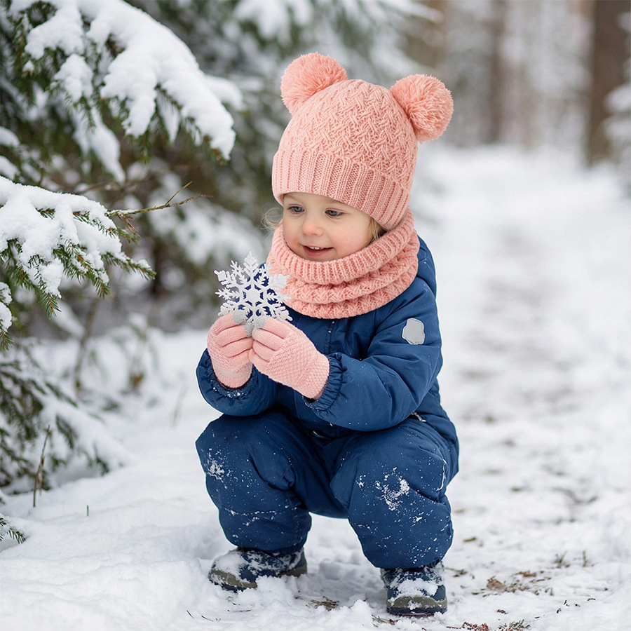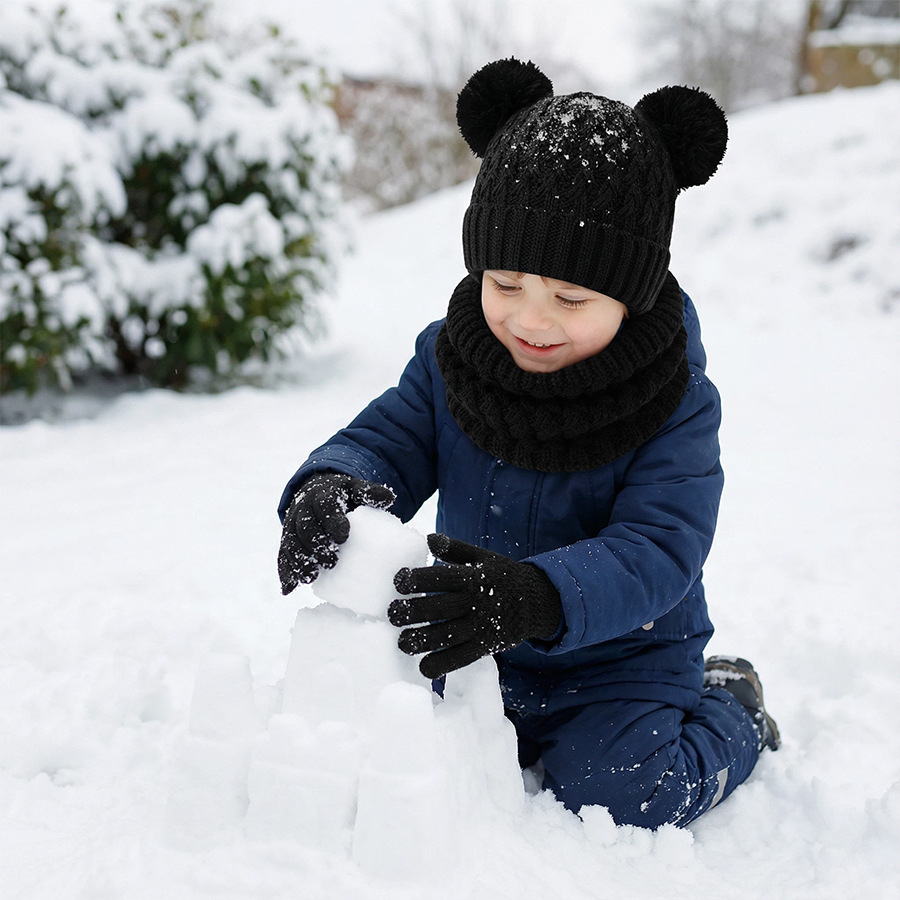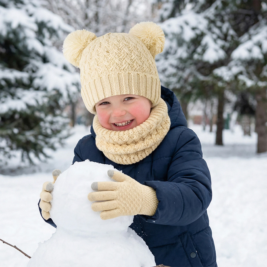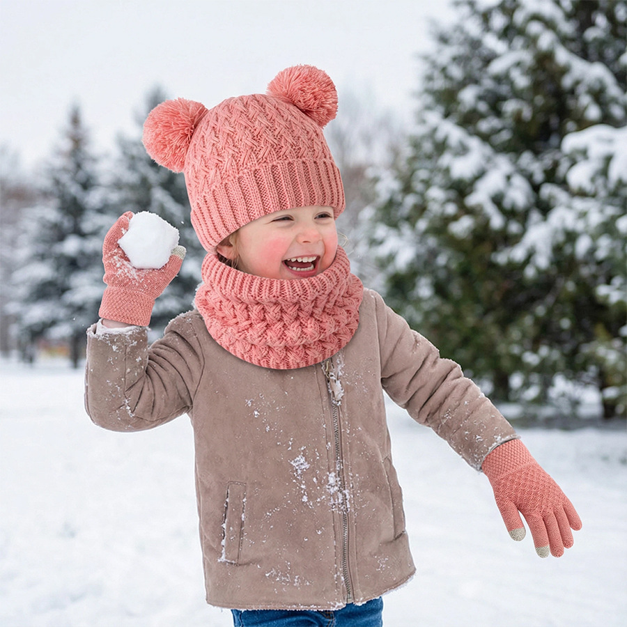 국경 간 새로운 유럽과 미국의 어린이 모자, 스카프 및 장갑 3 피스 세트 가을, 겨울 벨벳 두꺼운 더블 볼 아기 모자