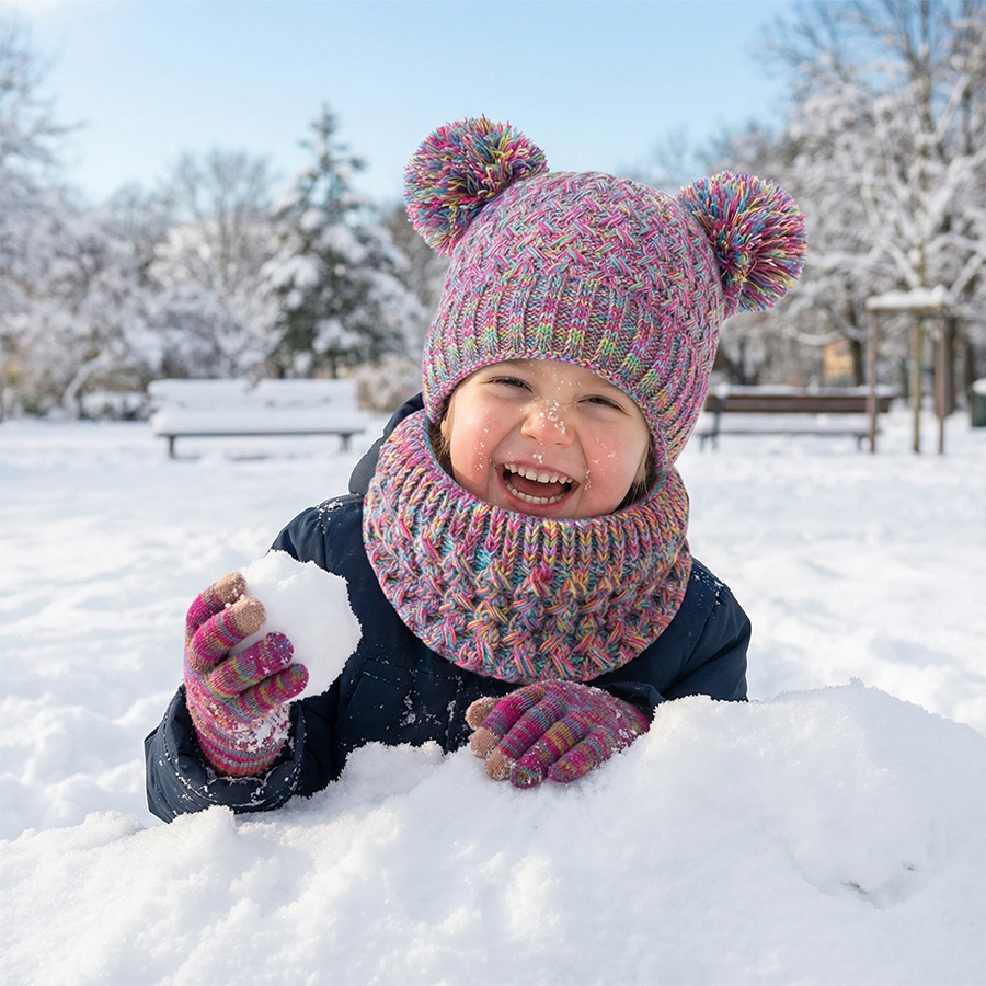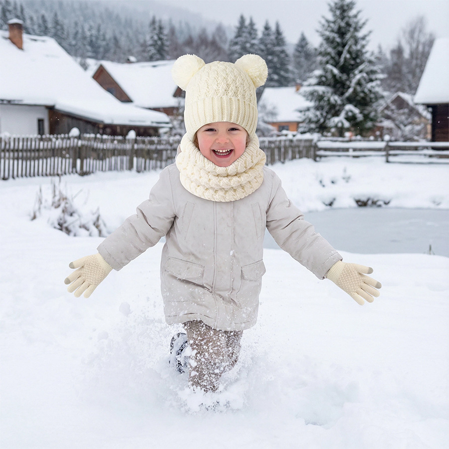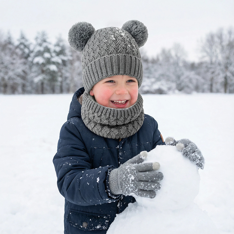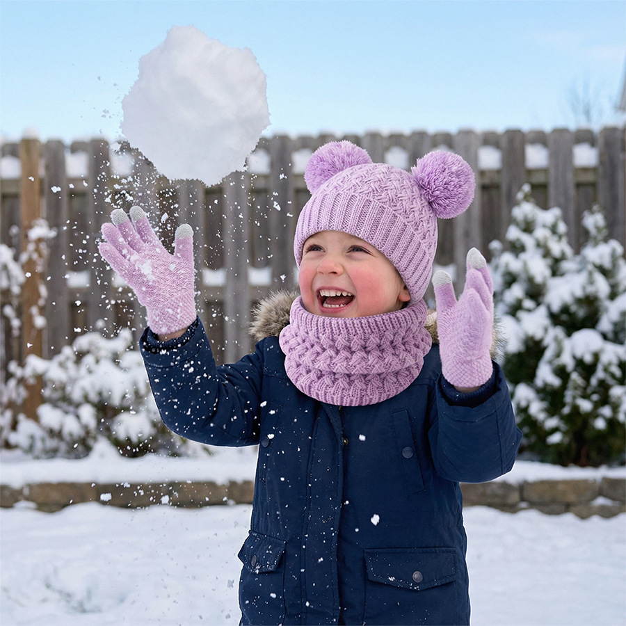 국경 간 새로운 유럽과 미국의 어린이 모자, 스카프 및 장갑 3 피스 세트 가을, 겨울 벨벳 두꺼운 더블 볼 아기 모자