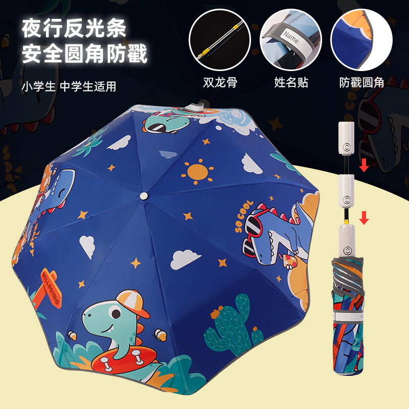 6-15세 어린이를 위한 안전한 반동 방지 둥근 모서리 만화 어린이 우산, 자동 절단, 비닐 우산, 이름 스티커 포함스토어 가기