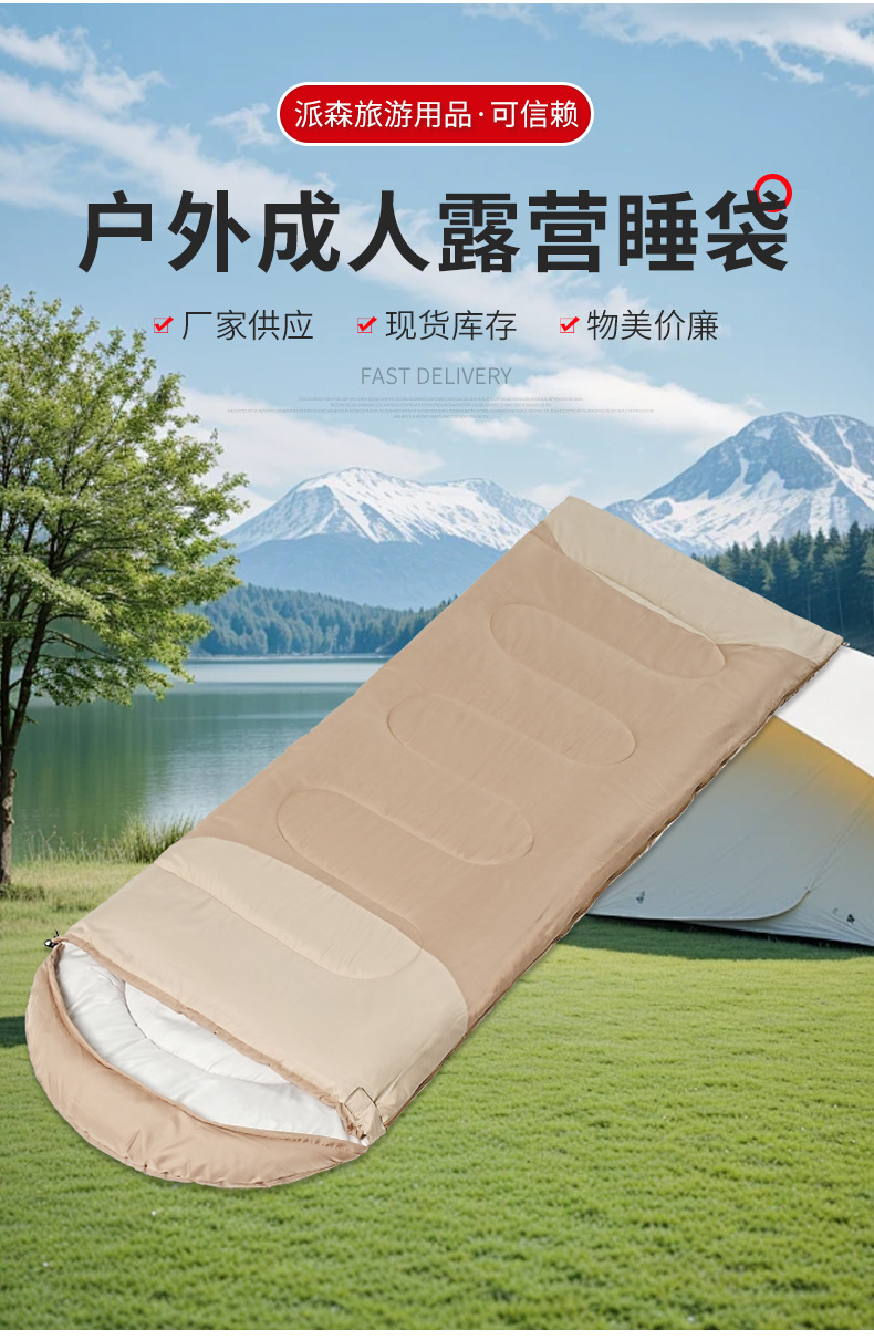 성인 야외 캠핑을 위한 새로운 슬리핑백, 겨울 두꺼운 방한 이불, 이중 목적, 부드럽고 편안함스토어 가기