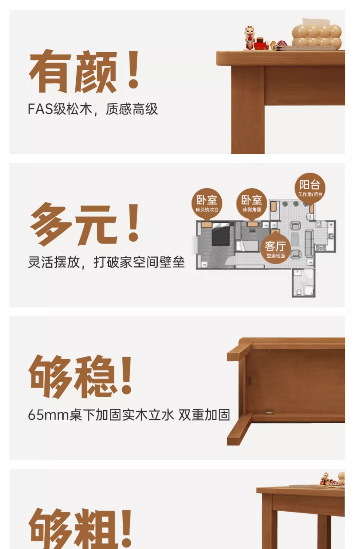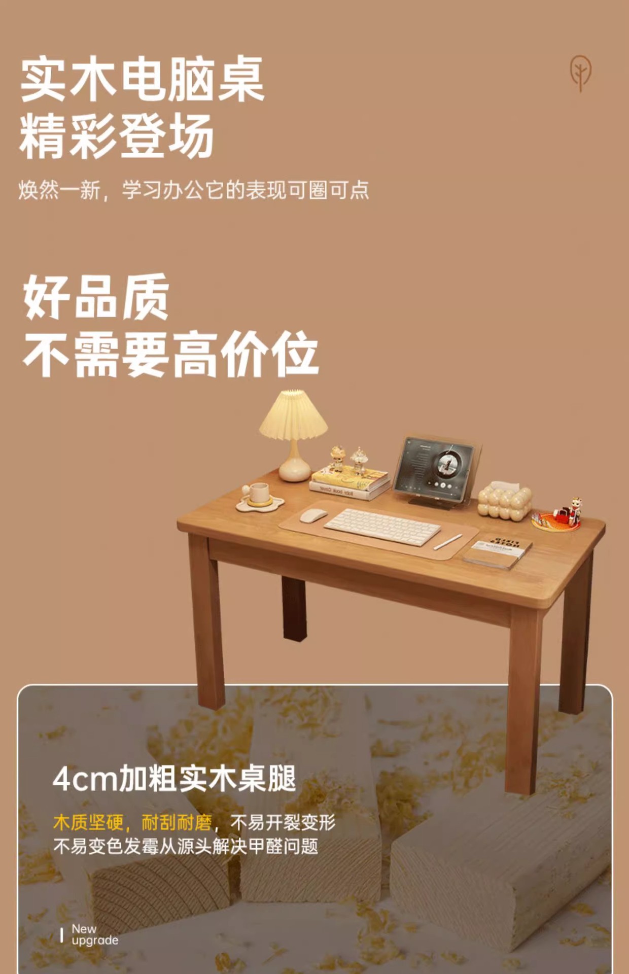 • 【메인 사진▲순수 원목] 통나무 색상 100*60CM (싱글 테이블)