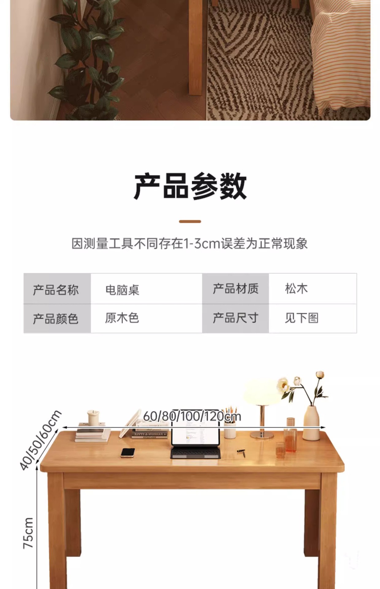 • 【메인 사진▲순수 원목] 통나무 색상 120*60CM (싱글 테이블)