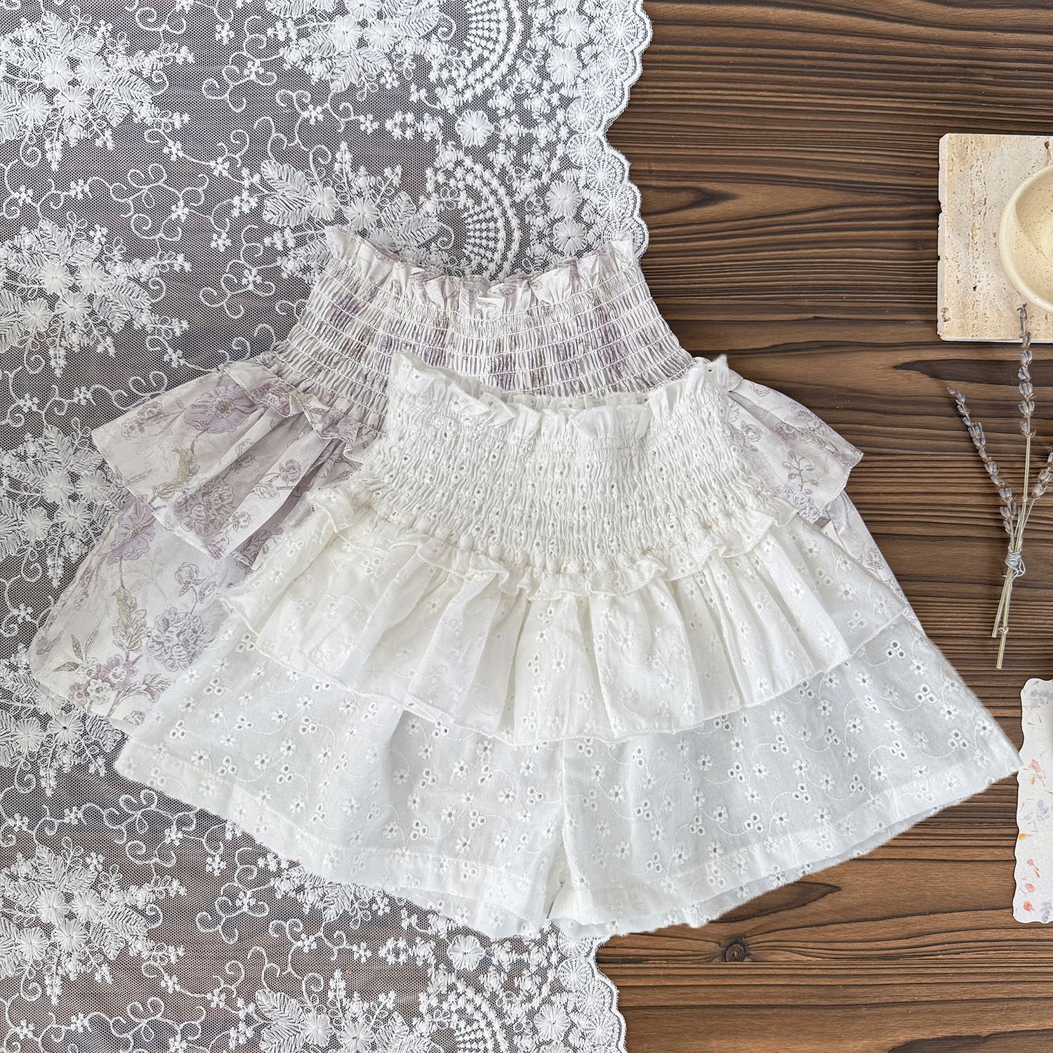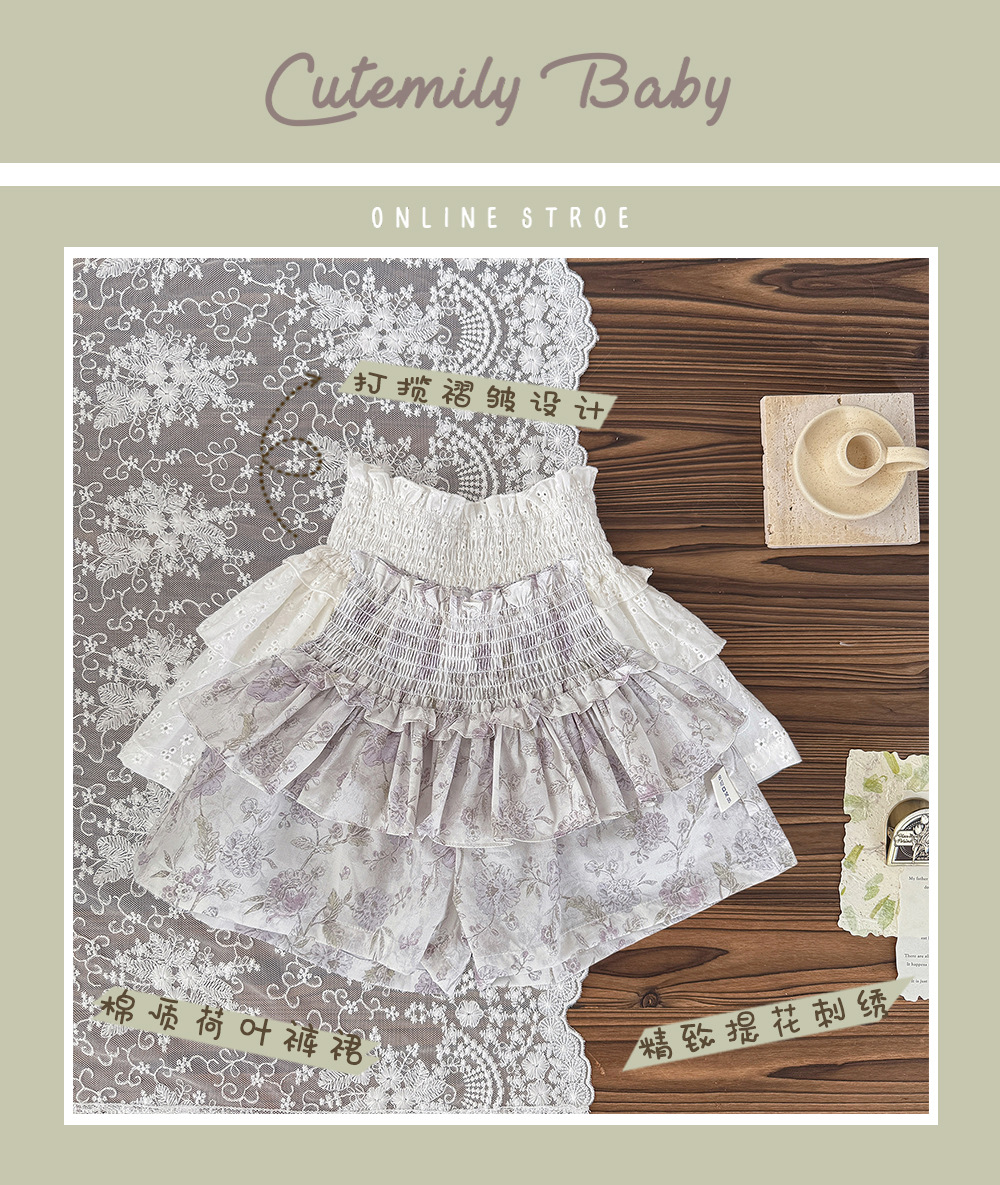 Cutemily Summer Ins Girl's Cotton Ballet 스타일 자수 반바지 아기 소녀의 꽃 케이크 연꽃 잎 반바지스토어 가기