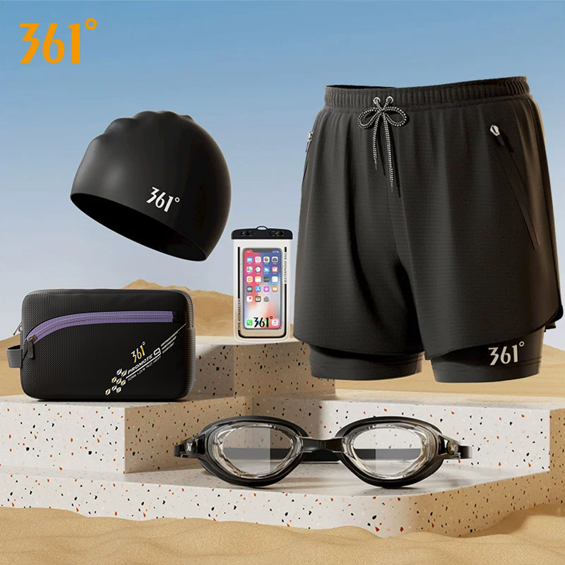 361 수영 팬티 남성용 수영 팬티 수영 모자 수영 고글 3 피스 세트 온천 안티 어색 해변 바지 남성용 수영 장비스토어 가기