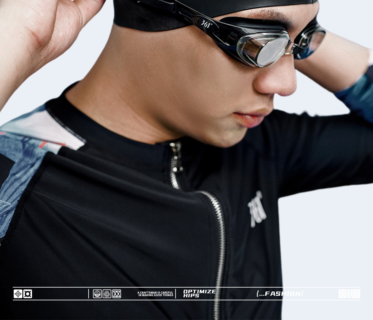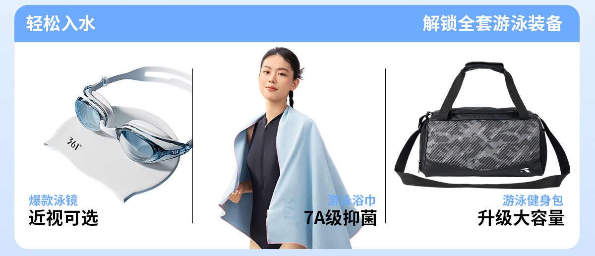 • 그라데이션 나이트 블랙 [5점식 수영복 + 방수 수영모 + 김서림 방지 수영 고글]