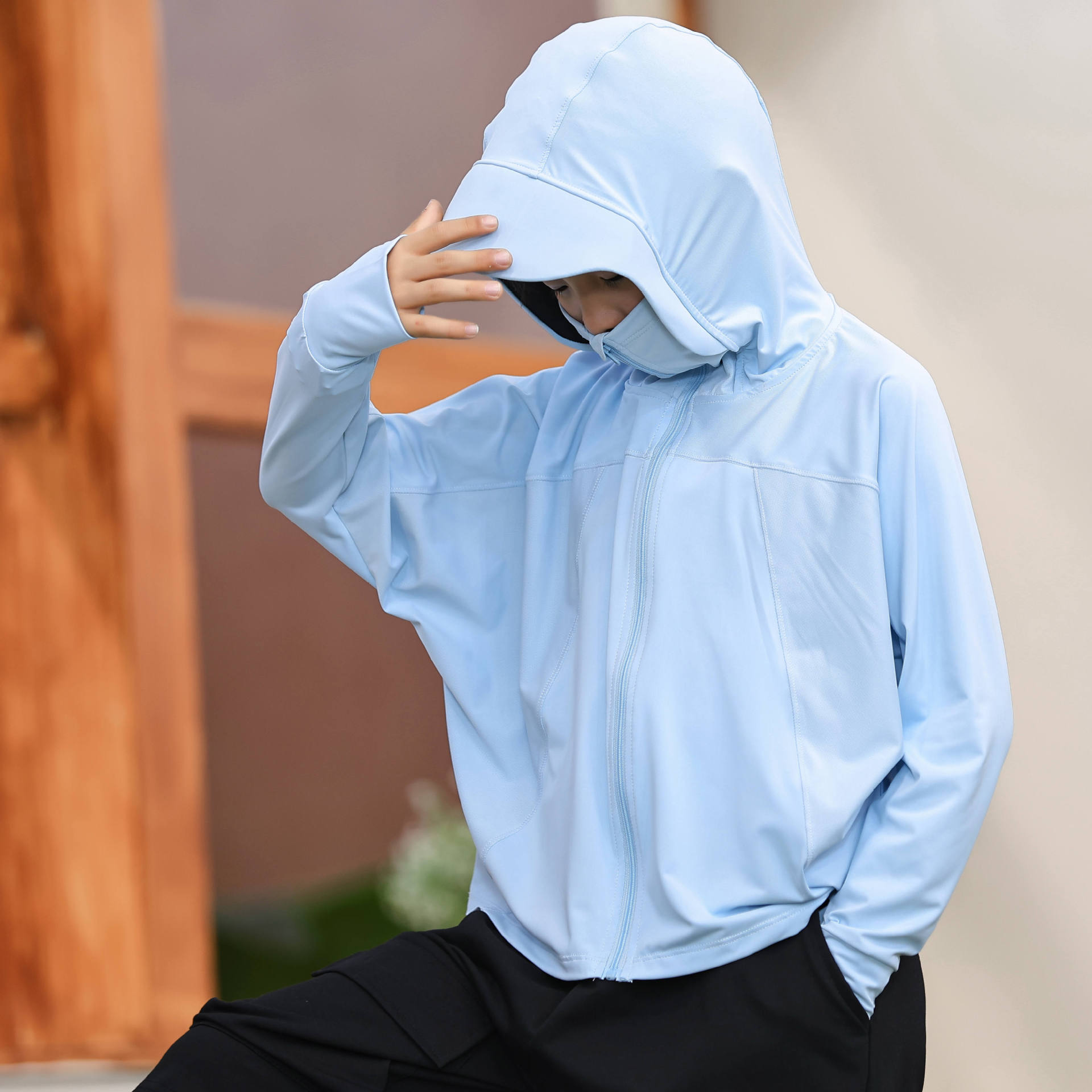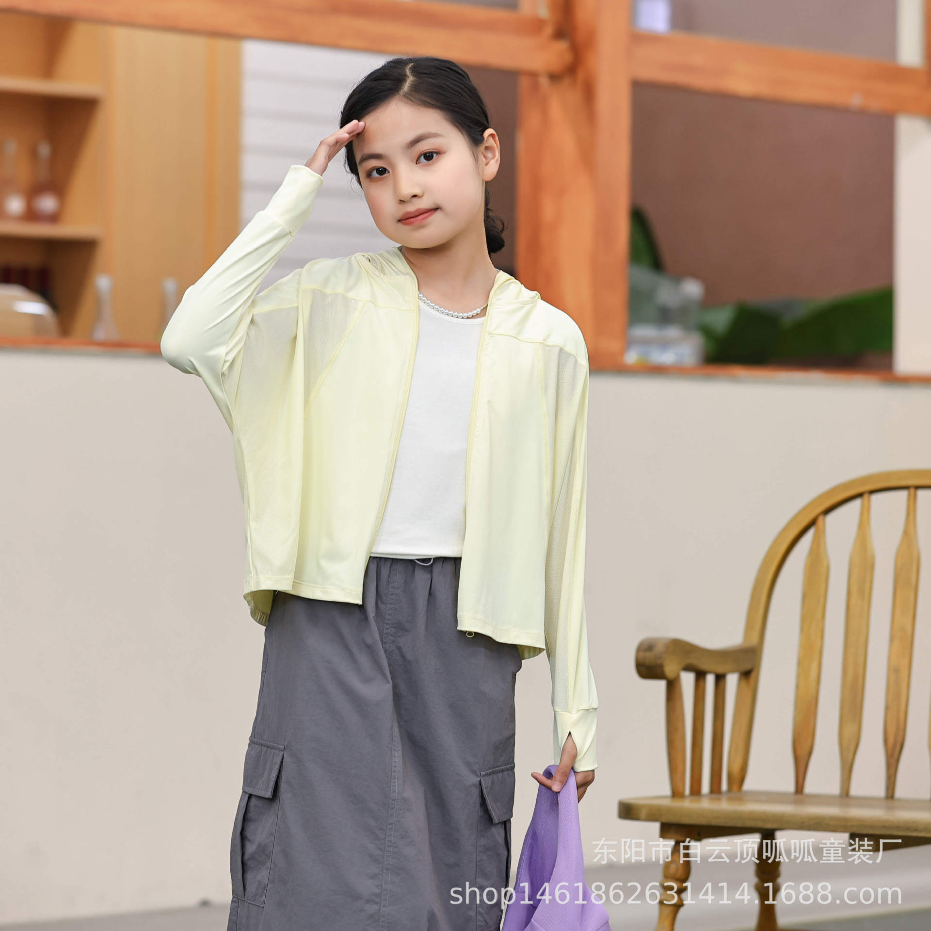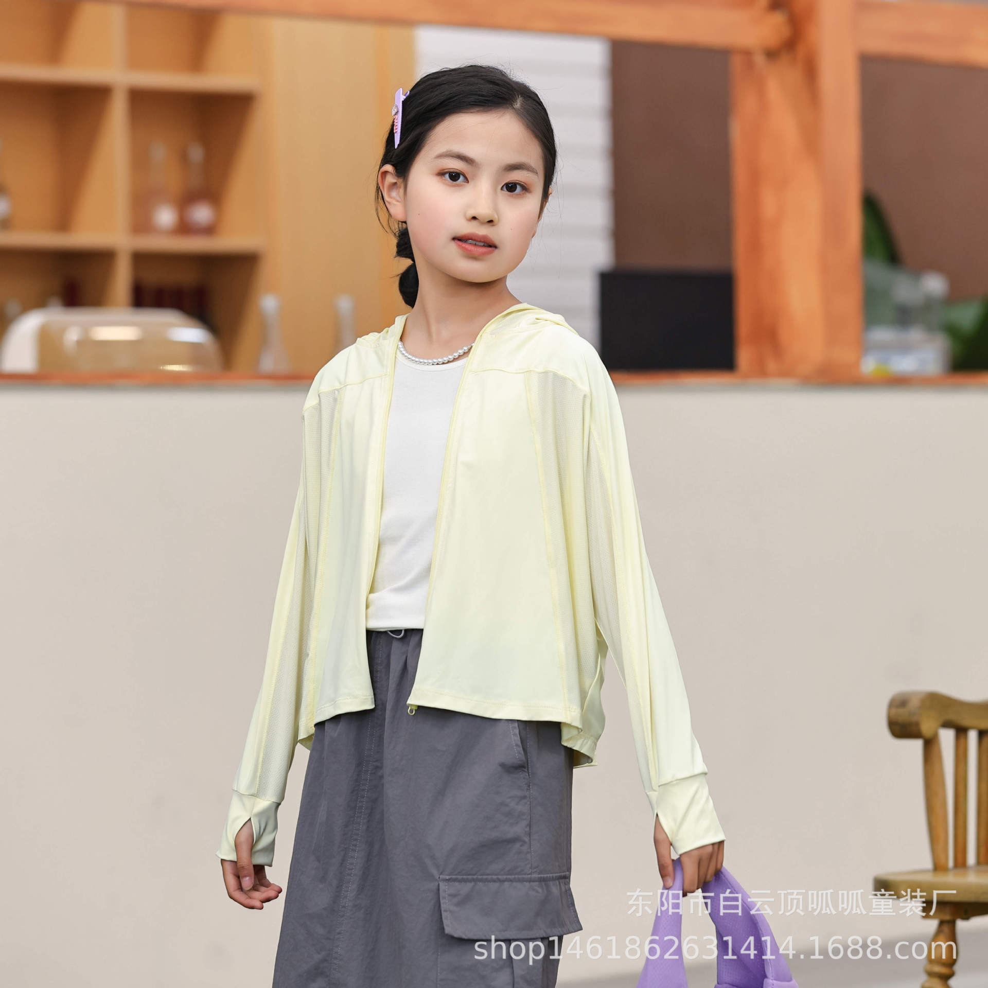 아동용 아이스 실크 자외선 차단 의류, 가볍고 얇은 자외선 차단 의류, 통기성이 뛰어난 후드 자외선 차단 의류, 여성용 시원한 여름 코트 2025 새로운 스타일