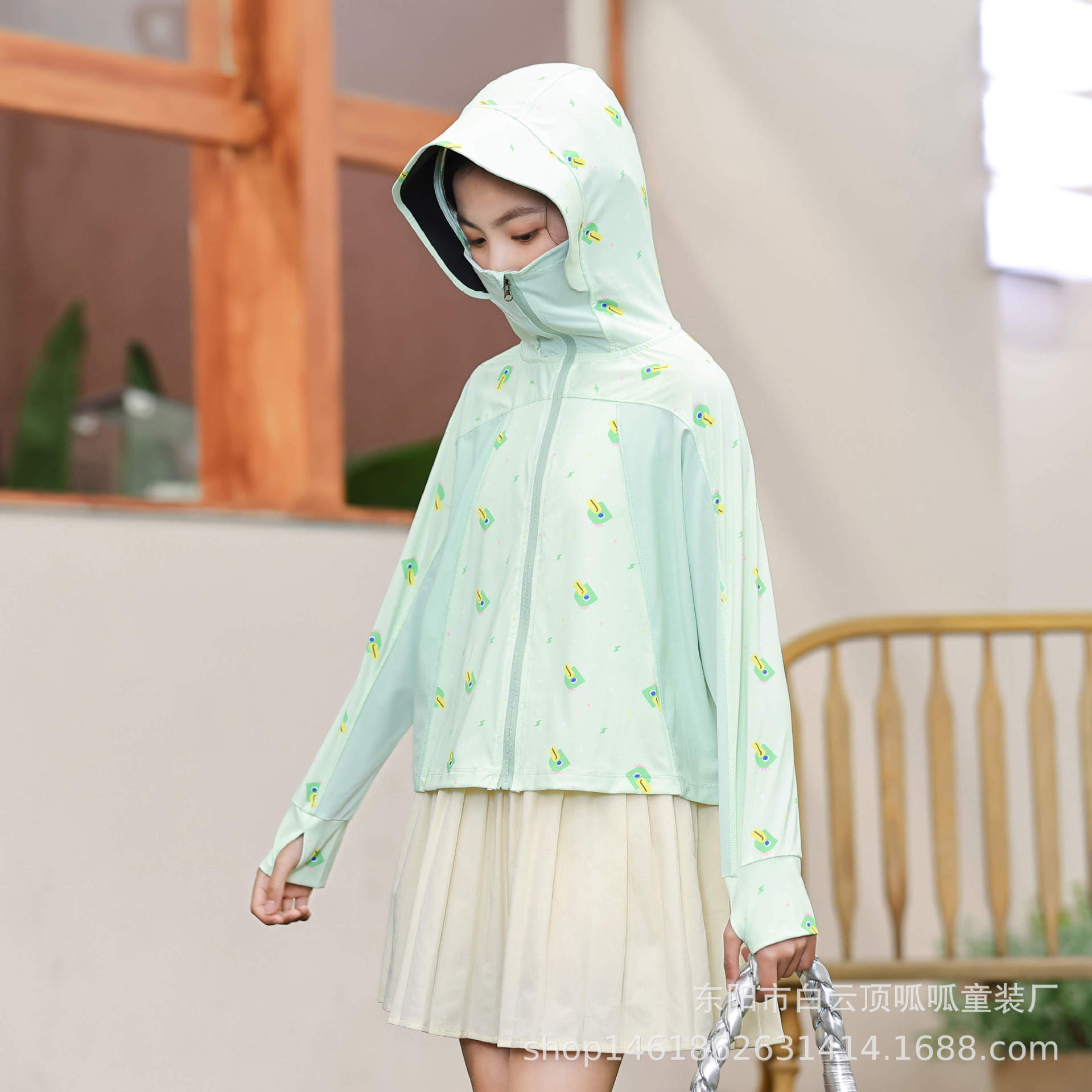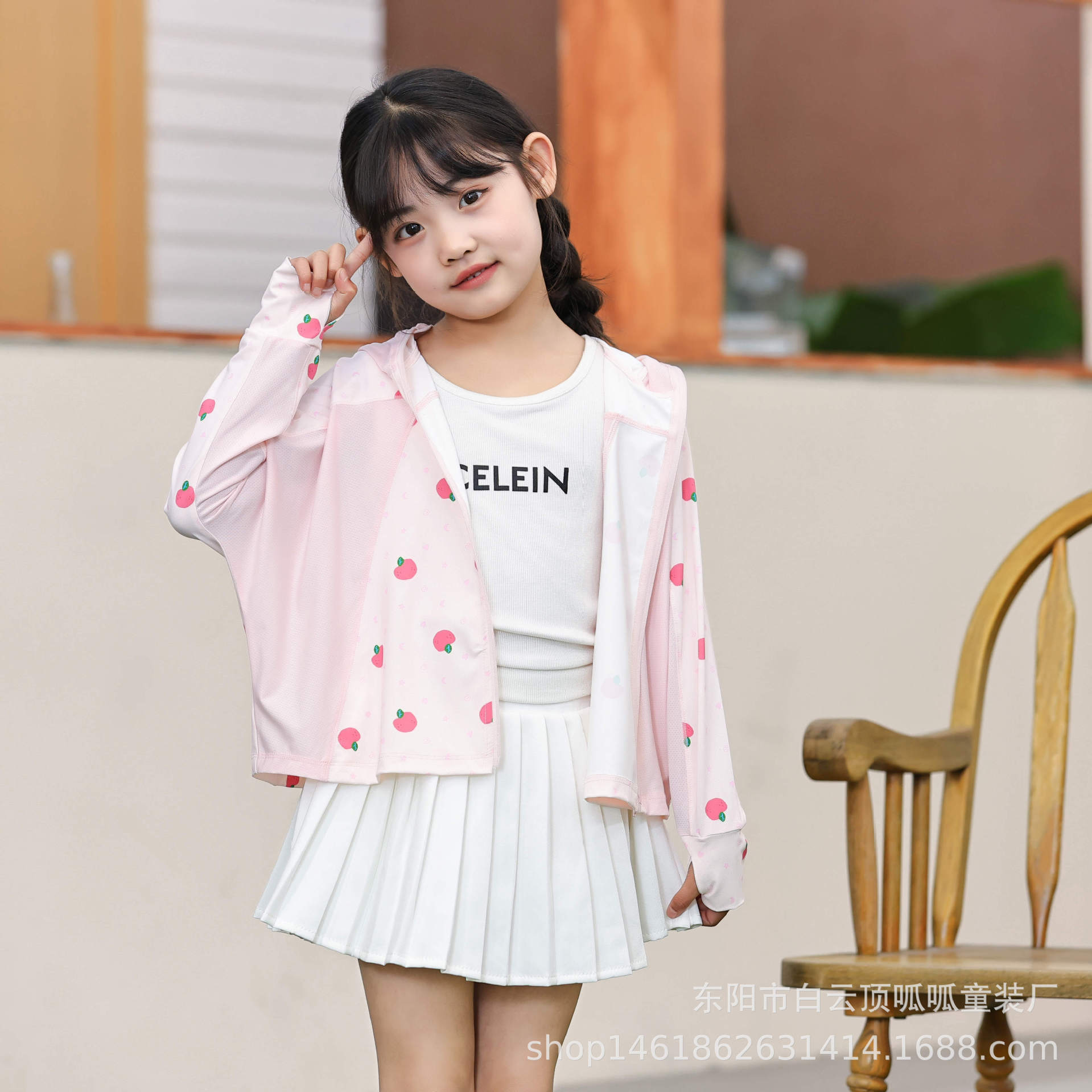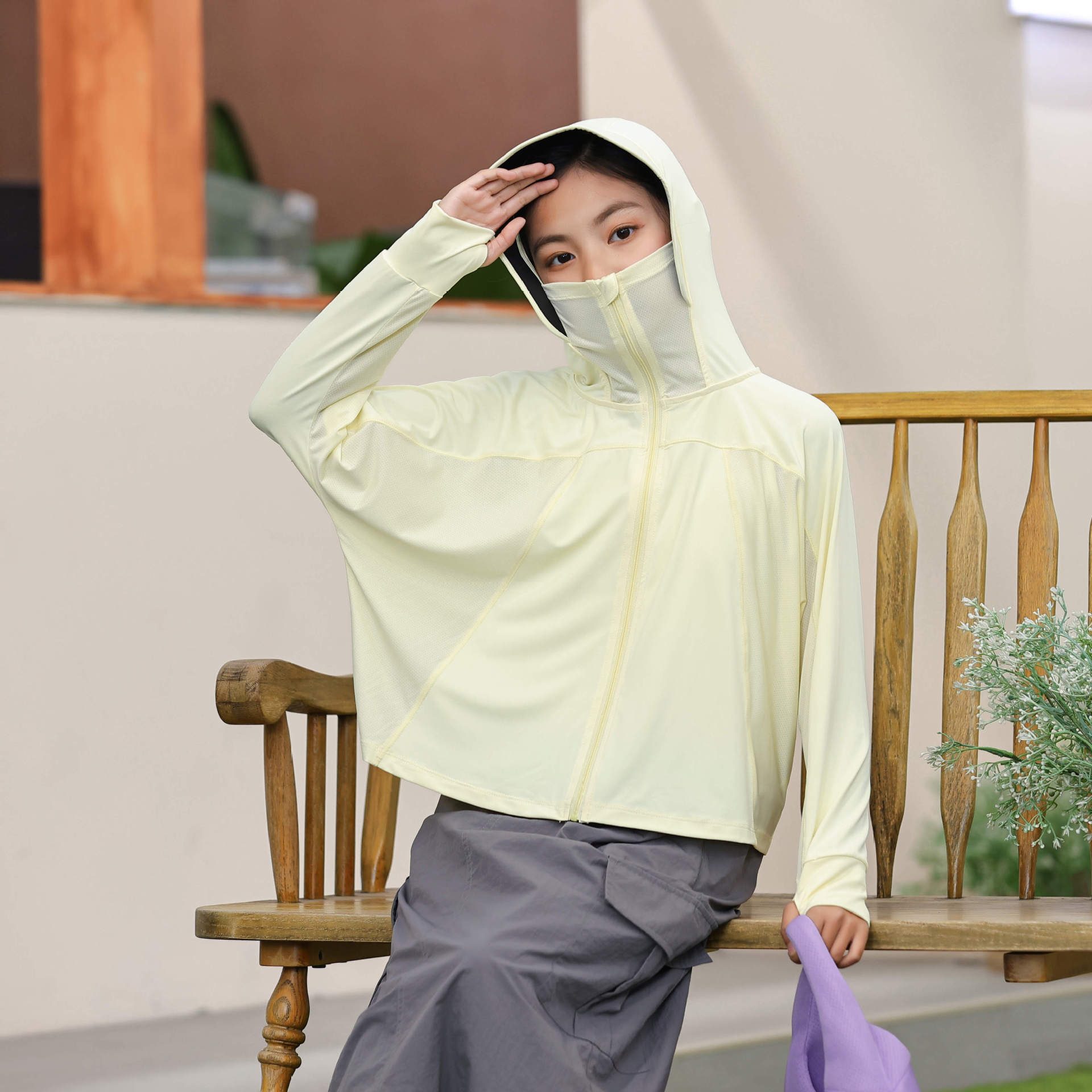 아동용 아이스 실크 자외선 차단 의류, 가볍고 얇은 자외선 차단 의류, 통기성이 뛰어난 후드 자외선 차단 의류, 여성용 시원한 여름 코트 2025 새로운 스타일