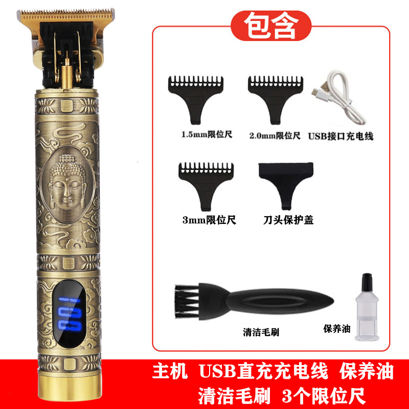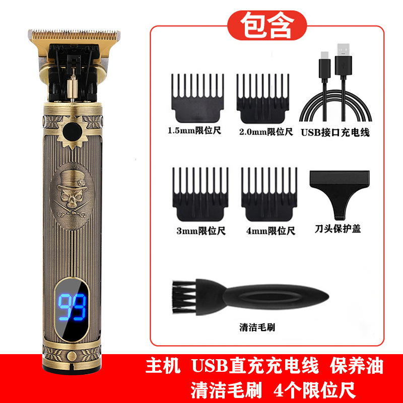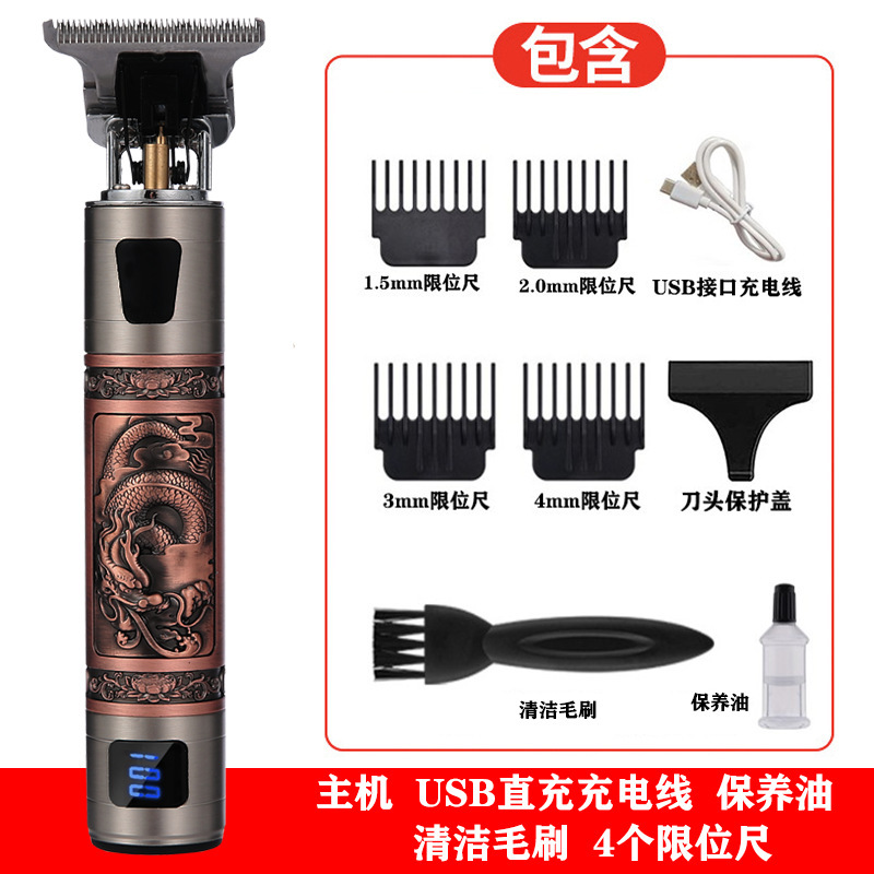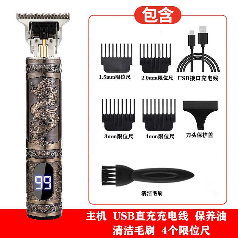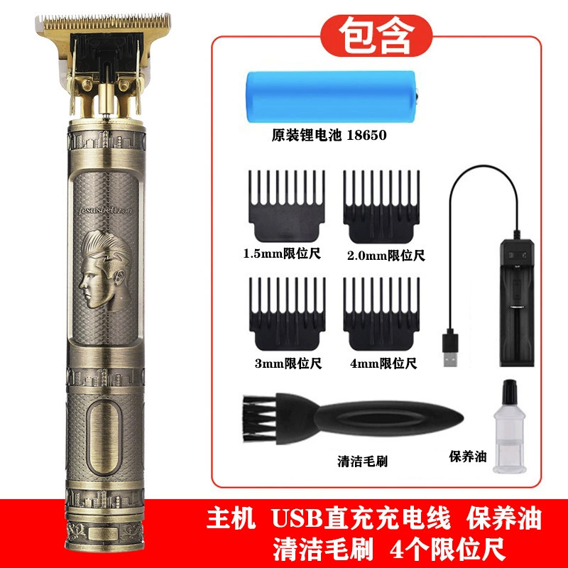 配件:电推主机.润滑油.毛刷.说明书.USB充电线.4个限位尺.彩盒