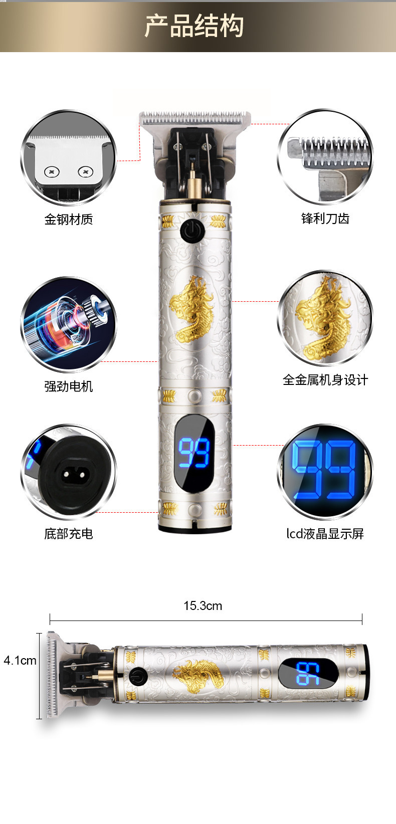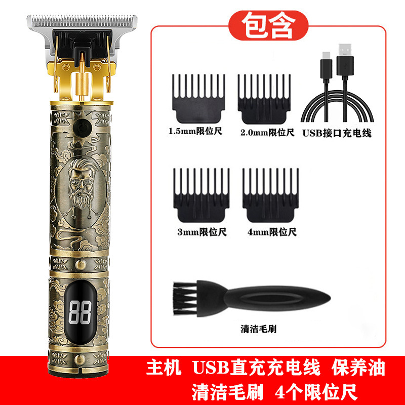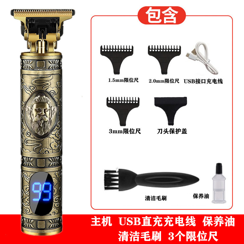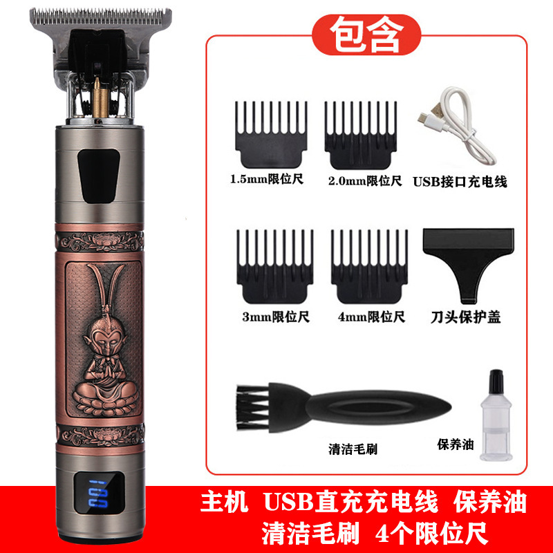 配件:电推主机.润滑油.毛刷.说明书.USB充电线.4个限位尺.彩盒