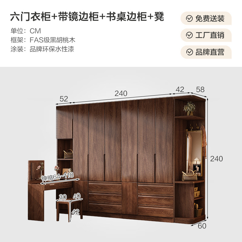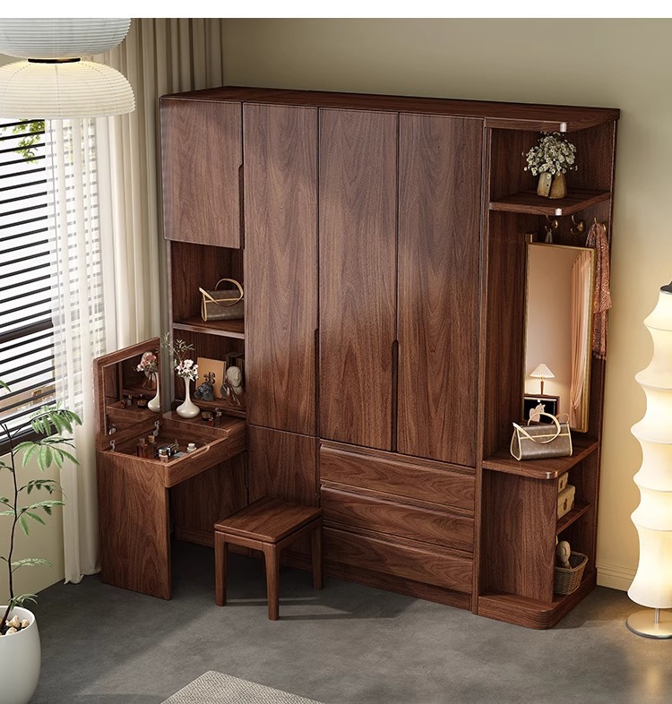 검은 호두 나무 옷장 코너 메이크업 테이블 조합 작은 아파트 침실 홈 데스크 내각 통합 연구 테이블