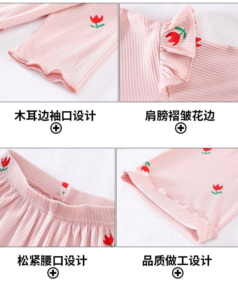 어린이 잠옷 모달 얇은 봄, 가을, 여름 새로운 어린이 7부 소매 소녀 정장 아기 소녀 가정복