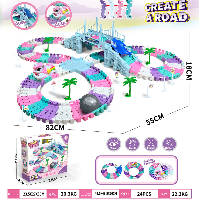 국경 간 유니콘 거미 전기 트랙 자동차 장난감 교육 창조적 인 조립 어린이 DIY 전기 트랙 자동차