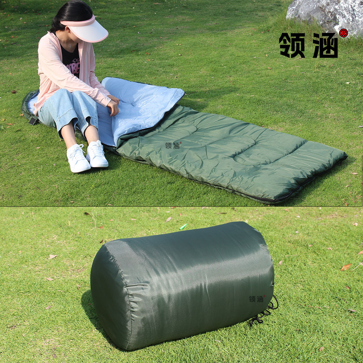 야외 휴대용 침낭, 훈련용 위장 침낭, 방한 및 따뜻한 봉투형 침낭, 겨울용 두꺼운 군용 녹색 침낭스토어 가기