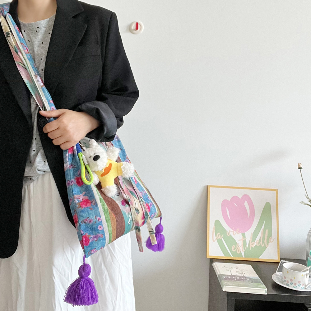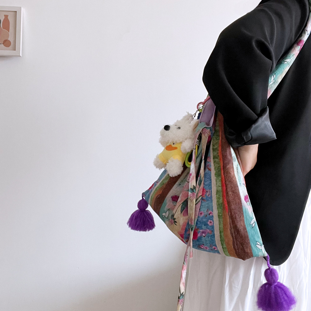 특별한 봄 유화 가방 면 얇은 국가 스타일 가방 틈새 대용량 다목적 가방 휴대용 어깨 크로스 바디 가방