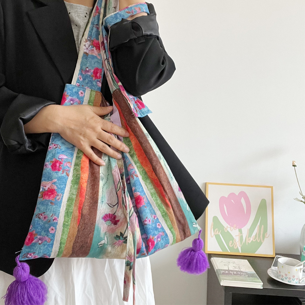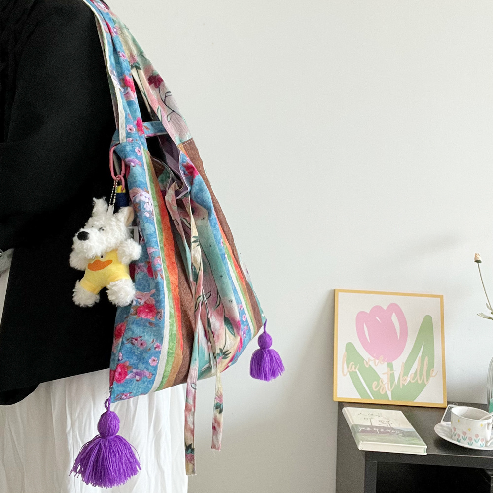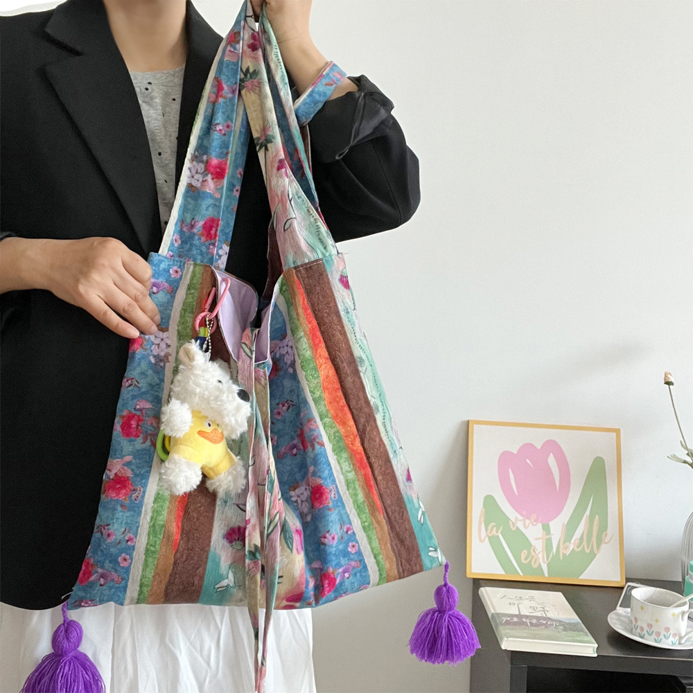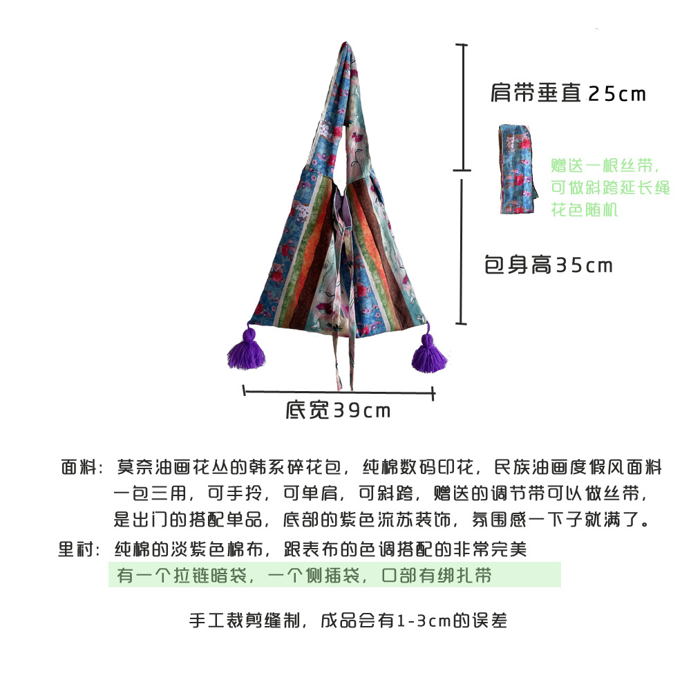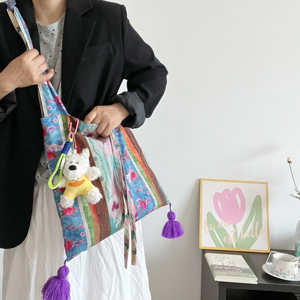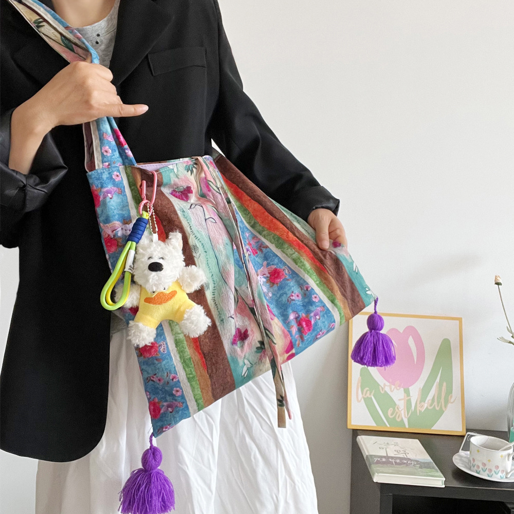 특별한 봄 유화 가방 면 얇은 국가 스타일 가방 틈새 대용량 다목적 가방 휴대용 어깨 크로스 바디 가방스토어 가기