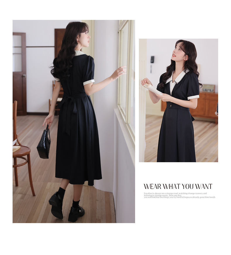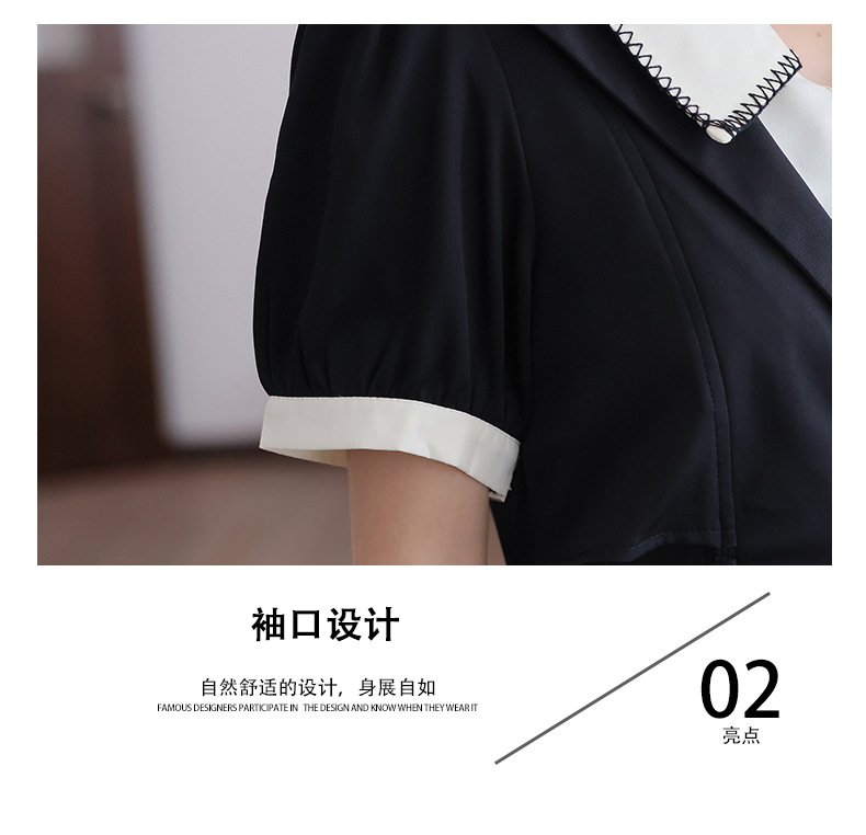 2025 년 여름 새로운 UGC 인터뷰 통근자 가짜 투피스 기질 대비 라르 짧은 소매 높은 허리 원피스 여성스토어 가기