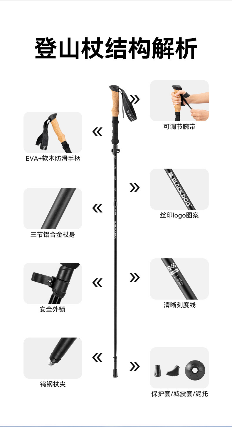 Blackdog 야외 접이식 산악 트레킹 스틱 알루미늄 합금 하이킹 장비 지팡이 등산 스틱스토어 가기