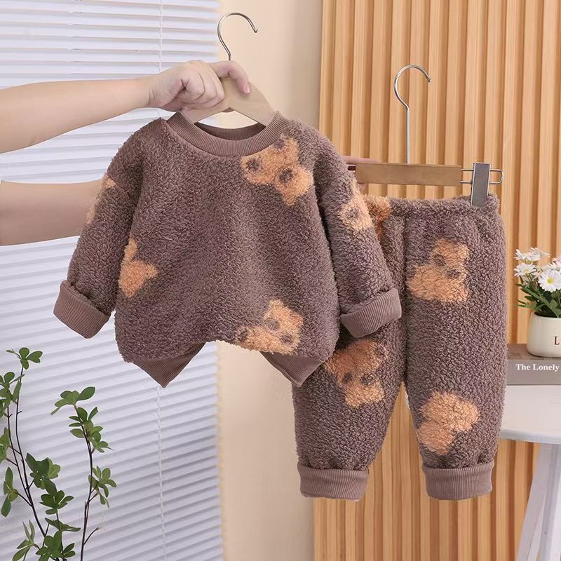 소년과 소녀를위한 어린이 Xiaomi 벨벳 속옷 세트 겨울 벨벳 두꺼운 투피스 세트 아기 캐주얼 따뜻하고 내구성스토어 가기
