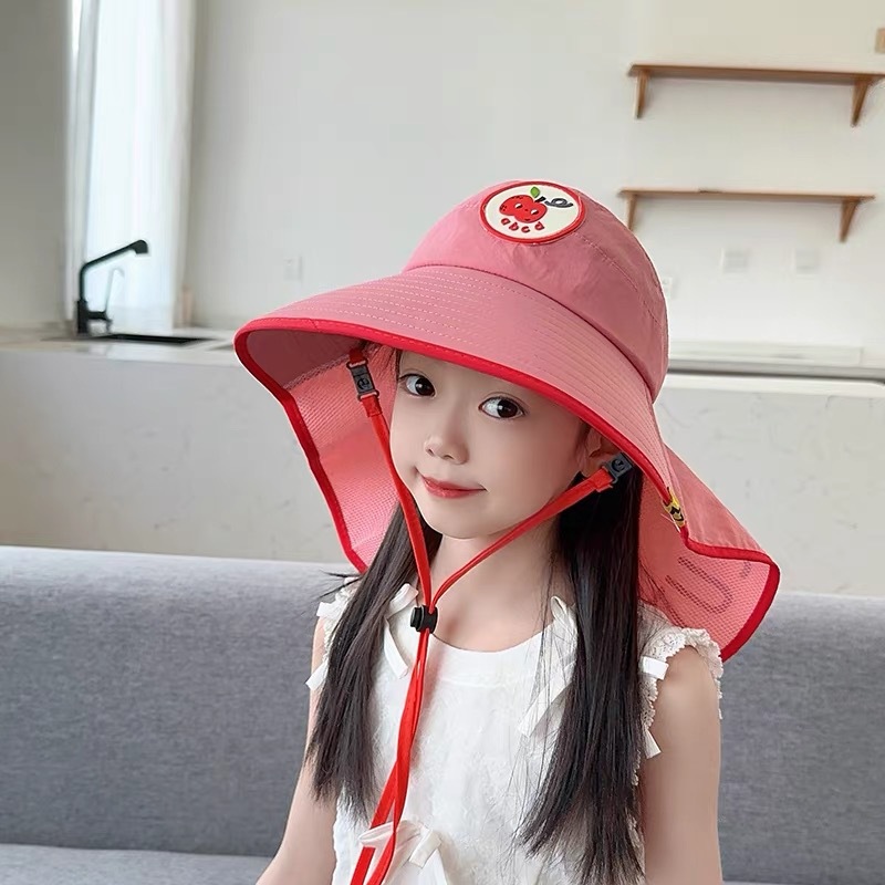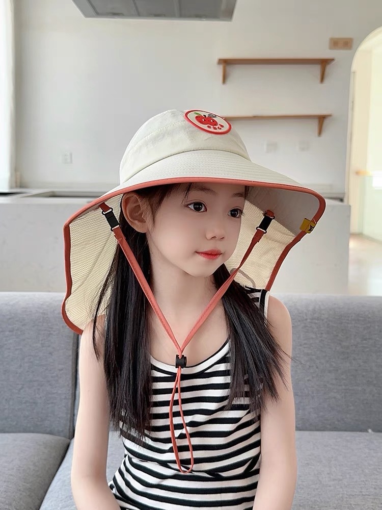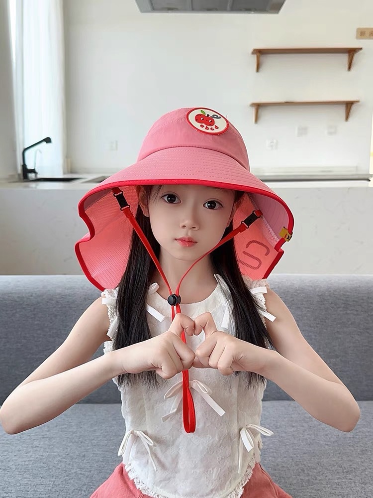 어린이용 자외선 차단 모자, 여름 귀여운 큰 챙 차양, 빈 모자, 숄, 남성용 및 여성용 자외선 차단 목 보호 모자