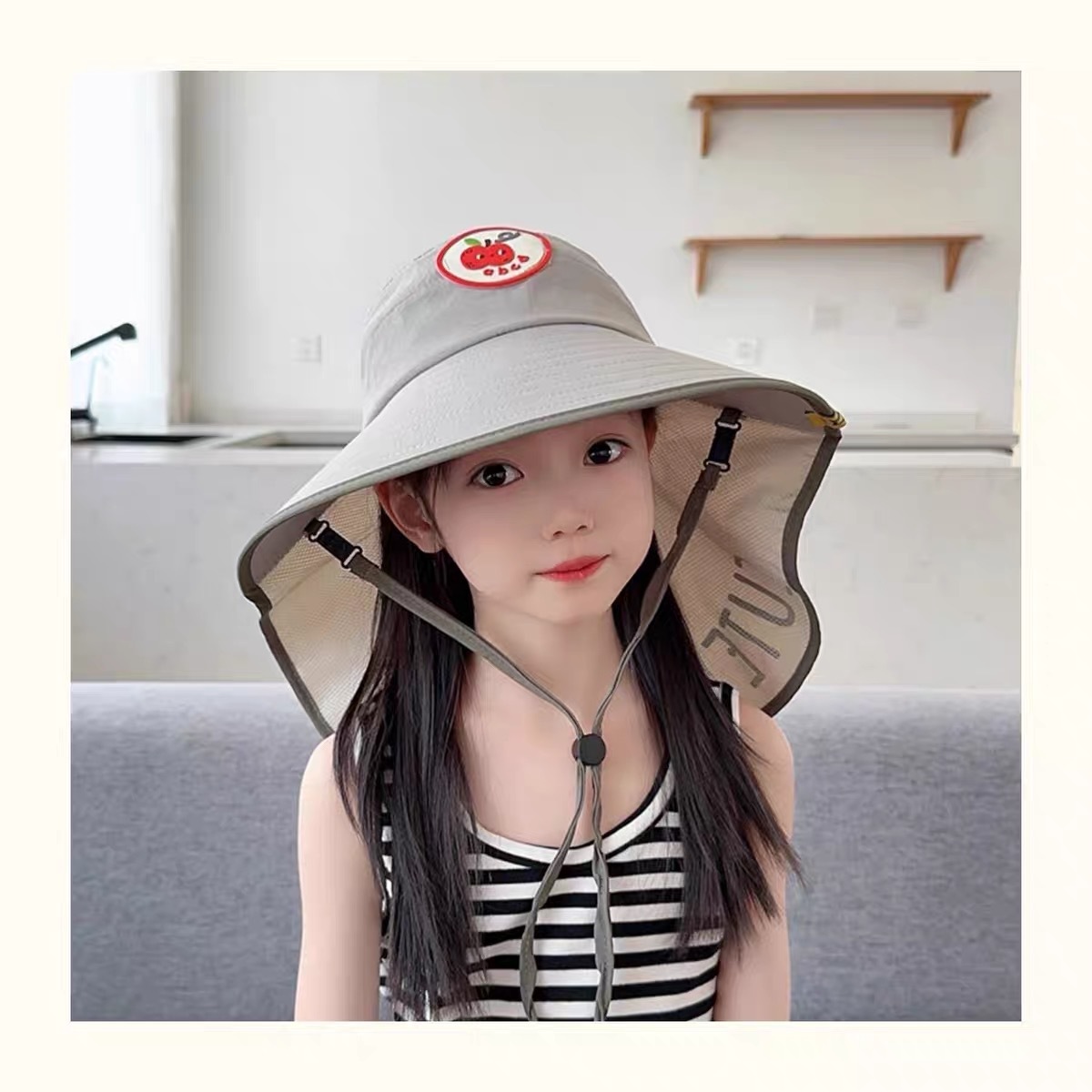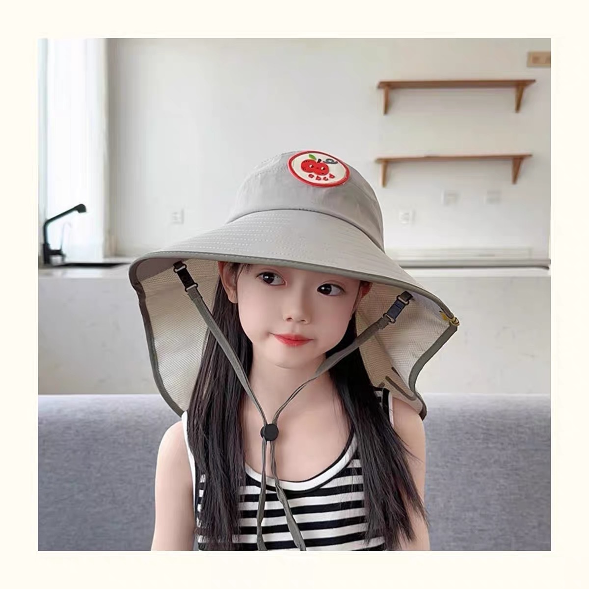 어린이용 자외선 차단 모자, 여름 귀여운 큰 챙 차양, 빈 모자, 숄, 남성용 및 여성용 자외선 차단 목 보호 모자스토어 가기