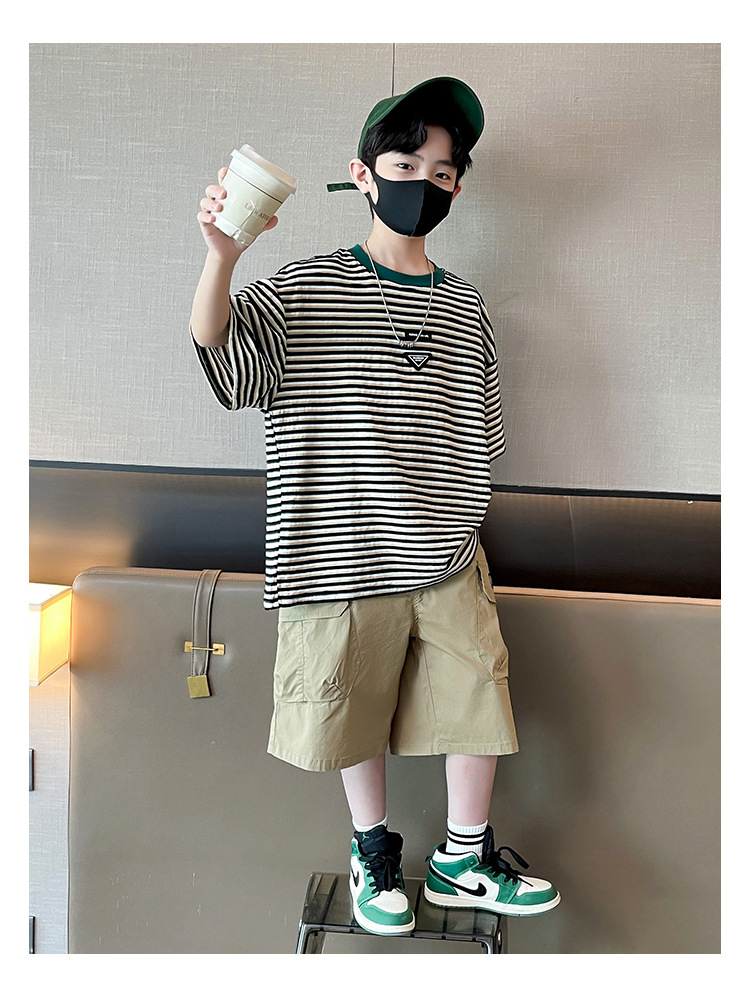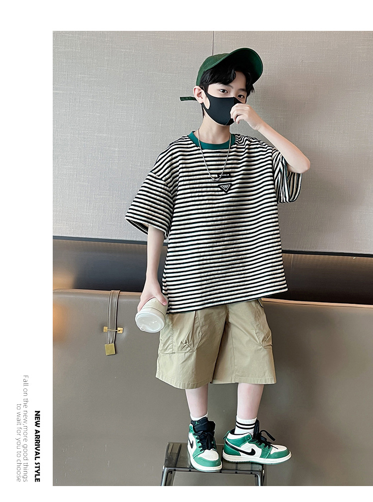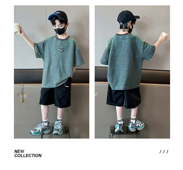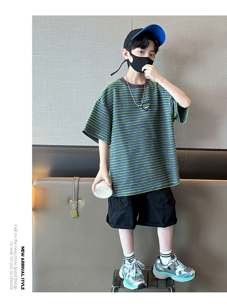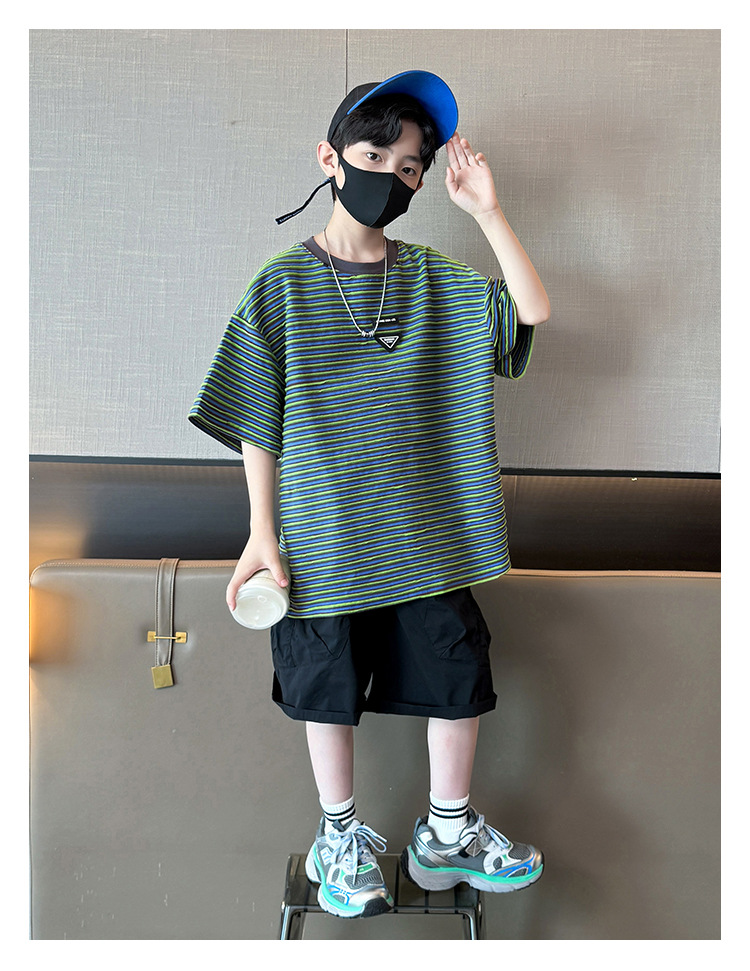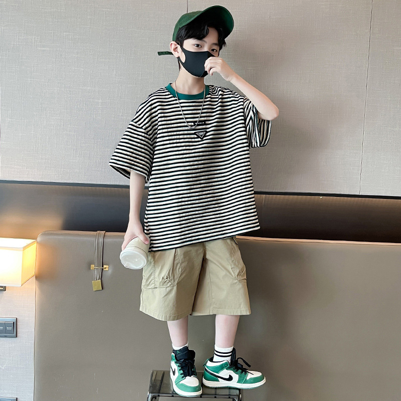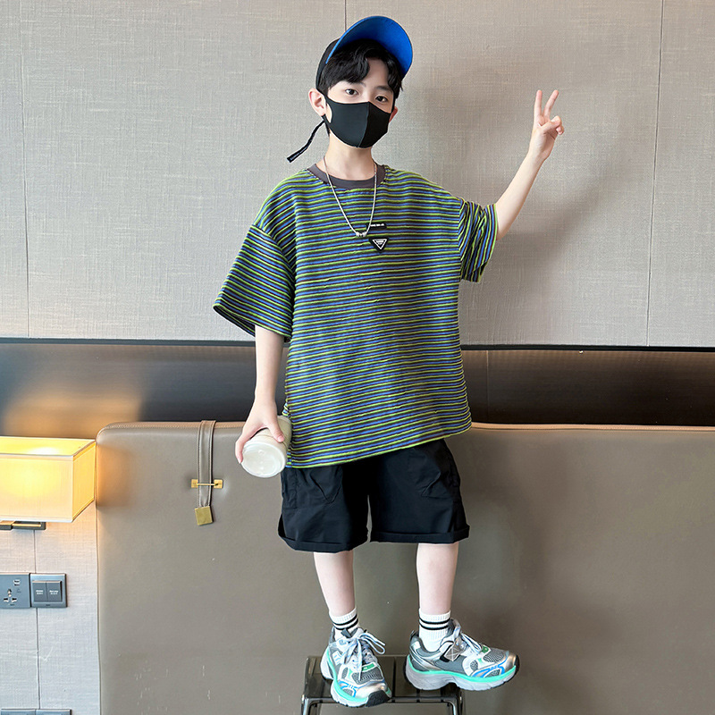 아동 의류 소년 여름 정장 2025 새로운 스타일 중대형 어린이 캐주얼 반팔 여름 어린이 멋진 잘 생긴 여름 스타일 소년 유행스토어 가기