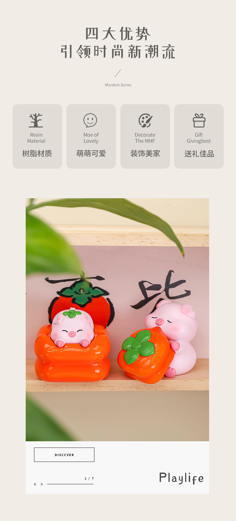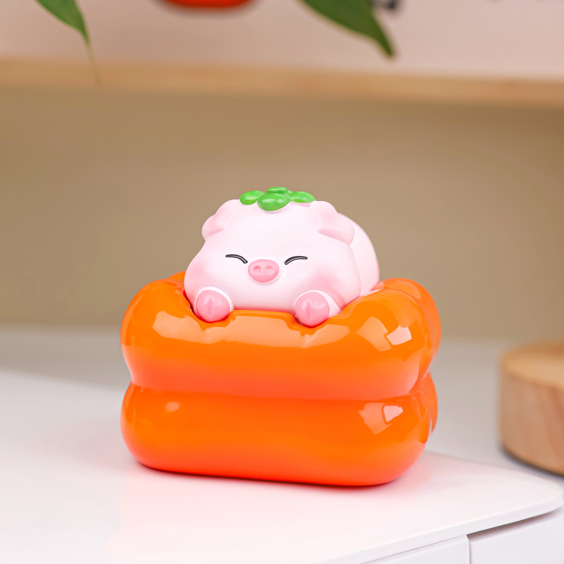 돼지 감 부드러운 귀여운 돼지 감 창조적 인 수지 장식품 홈 장식 소녀를위한 데스크탑 인형 선물스토어 가기
