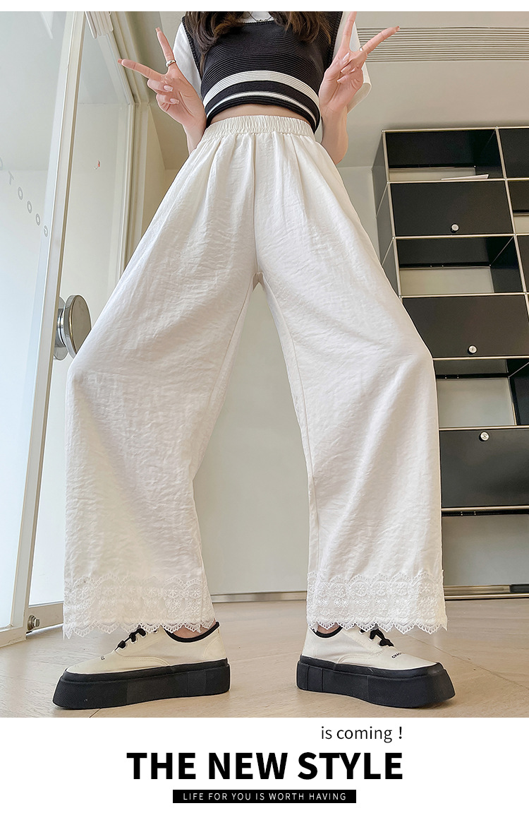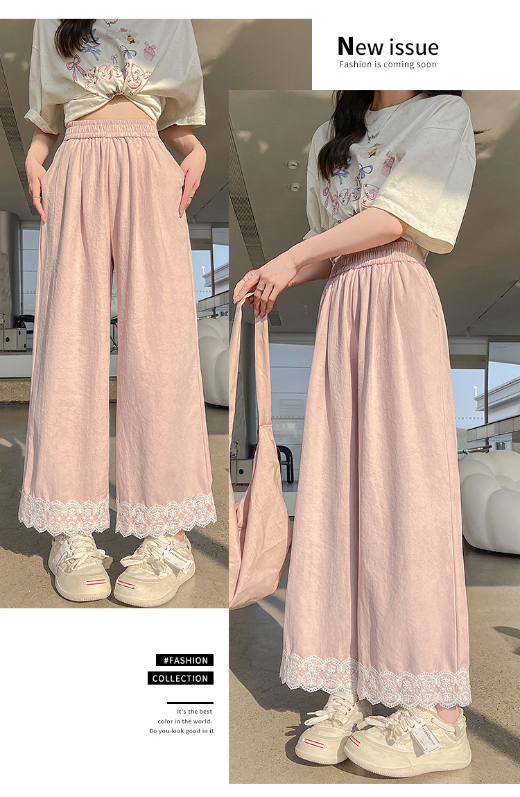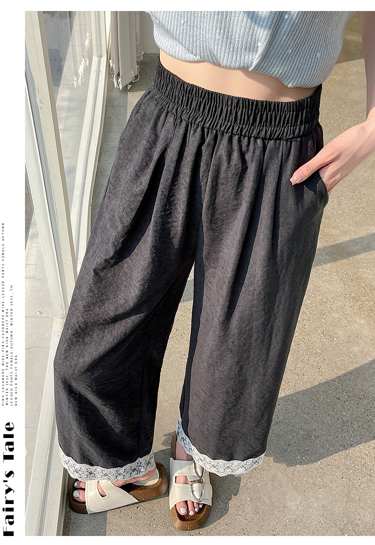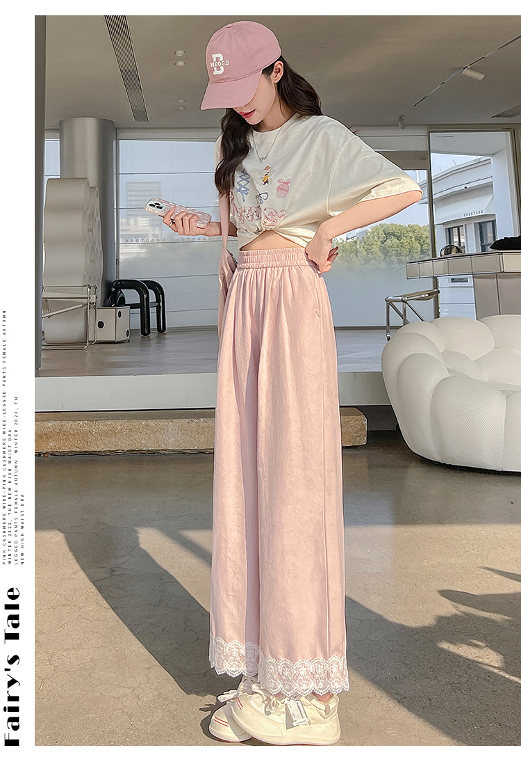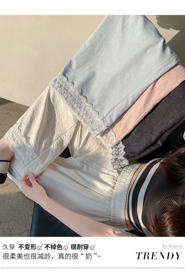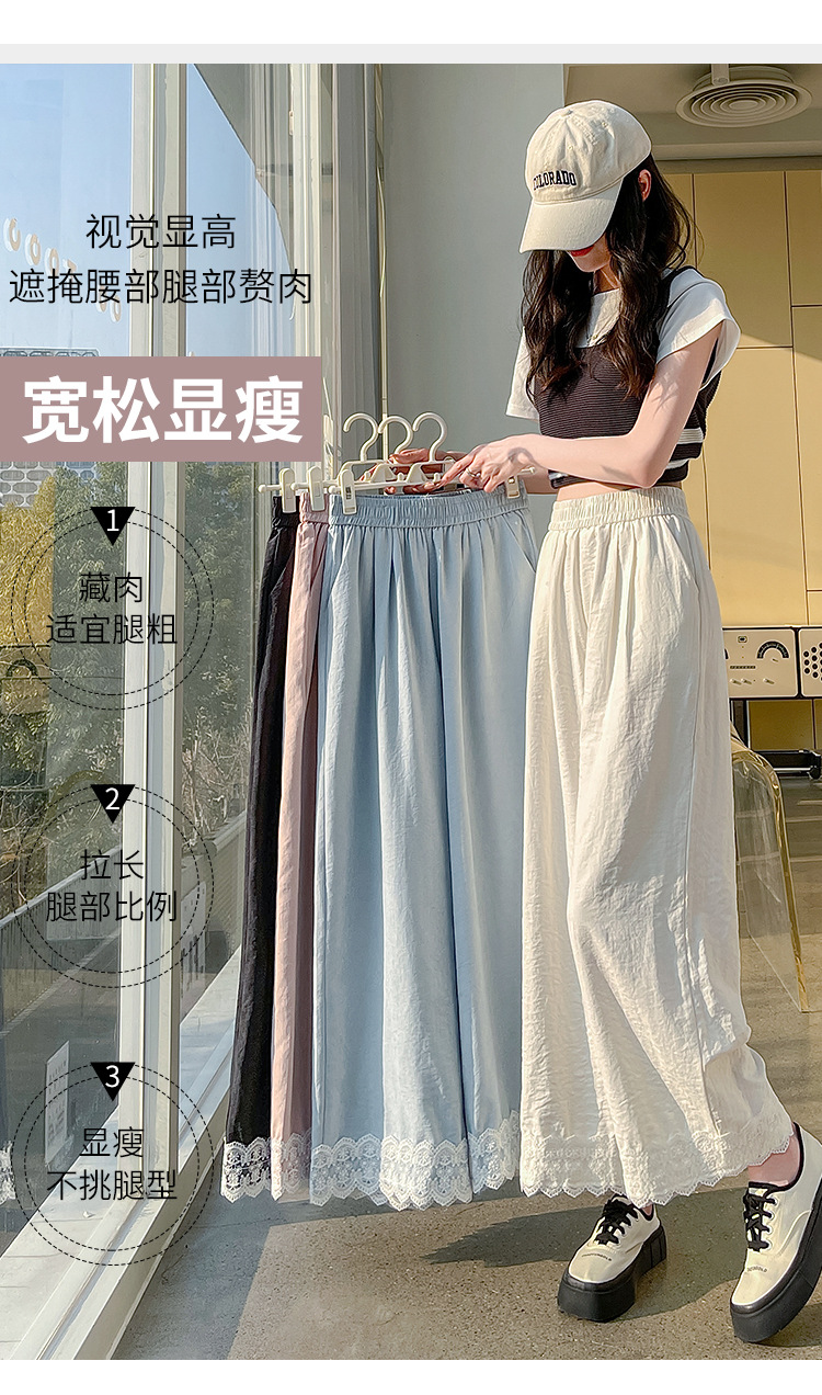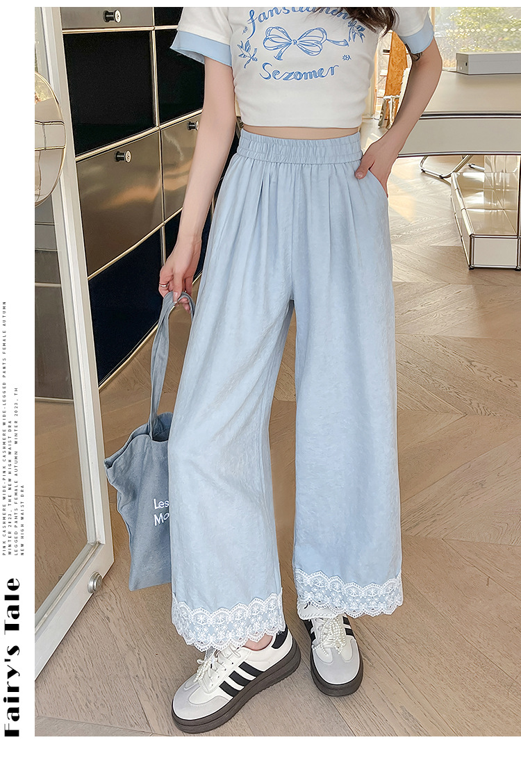진짜 샷 레이스 바느질 아이스 실크 우유 넓은 다리 바지 여성의 여름 높은 허리 슬리밍 스트레이트 캐주얼 바지스토어 가기