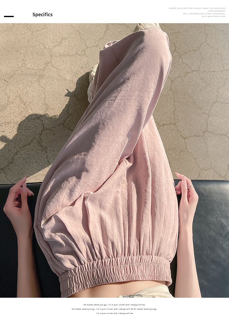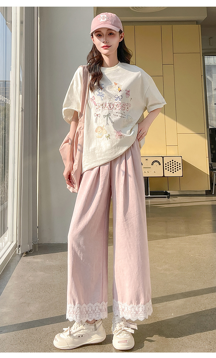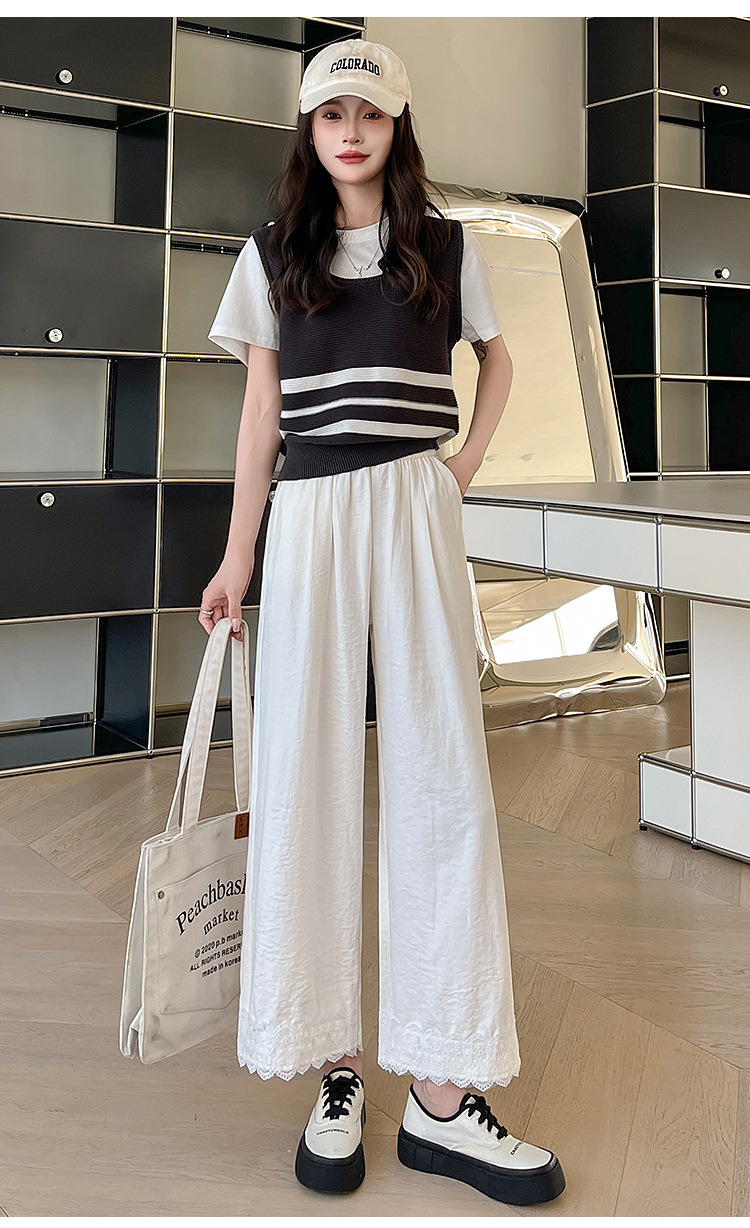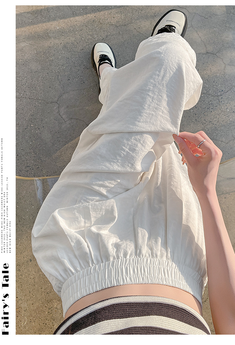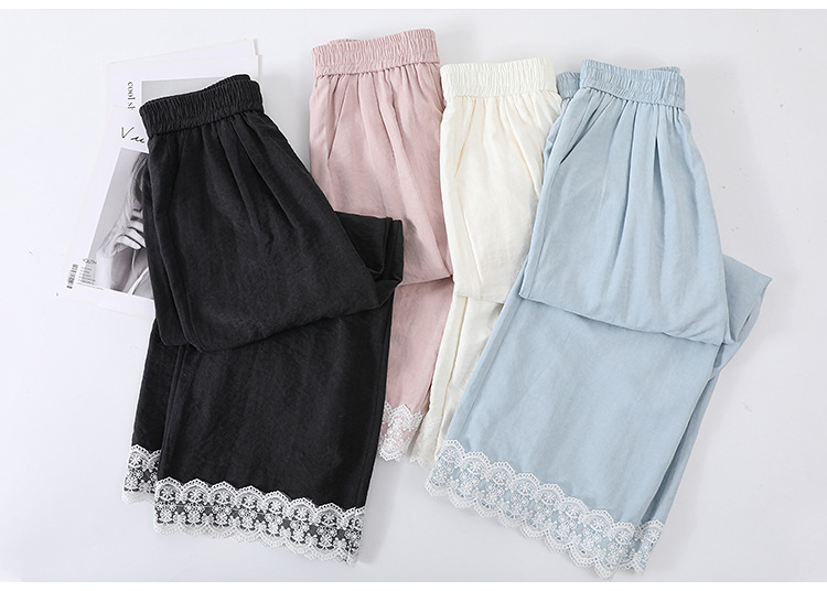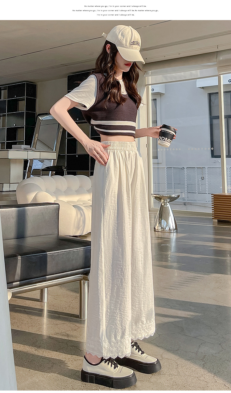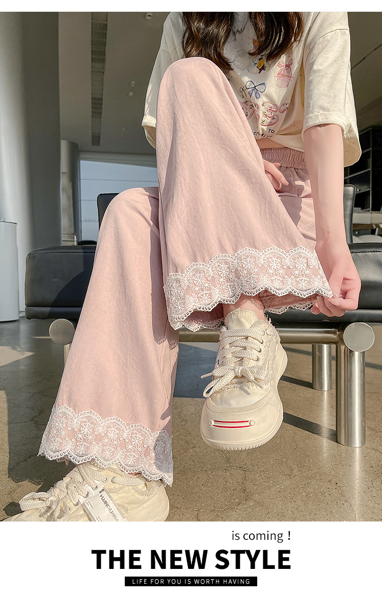 진짜 샷 레이스 바느질 아이스 실크 우유 넓은 다리 바지 여성의 여름 높은 허리 슬리밍 스트레이트 캐주얼 바지스토어 가기