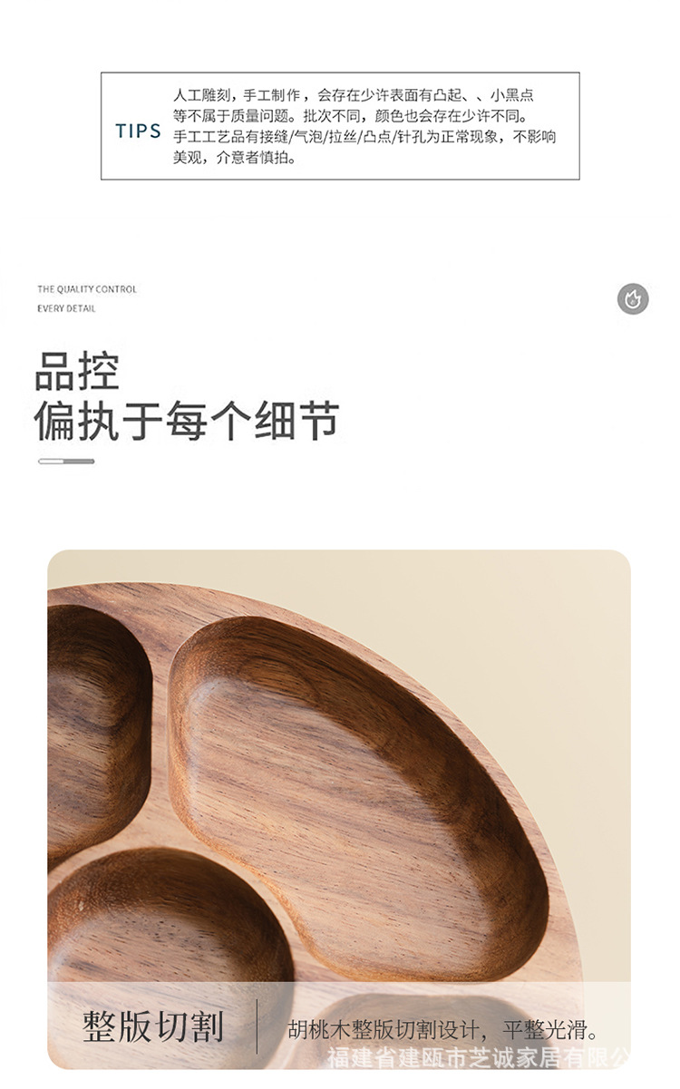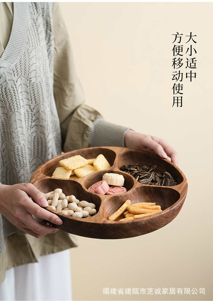 • 남미산 호두 원형 5격자 과일접시 30×30*4