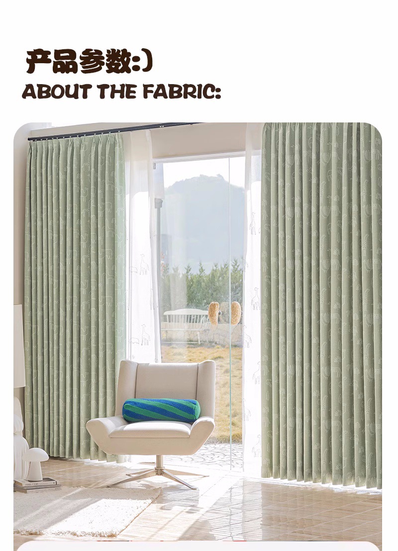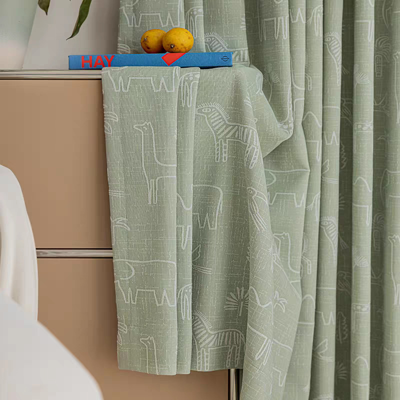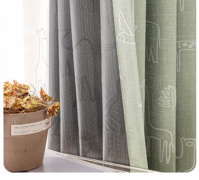 새로운 어린이 방 커튼 소년과 소녀 베이 창 침실 녹색 음영 원사 염색 자카드 만화 현대 커튼