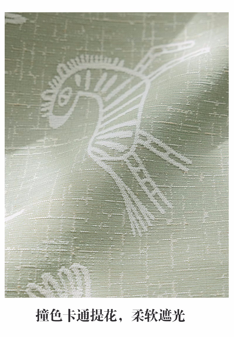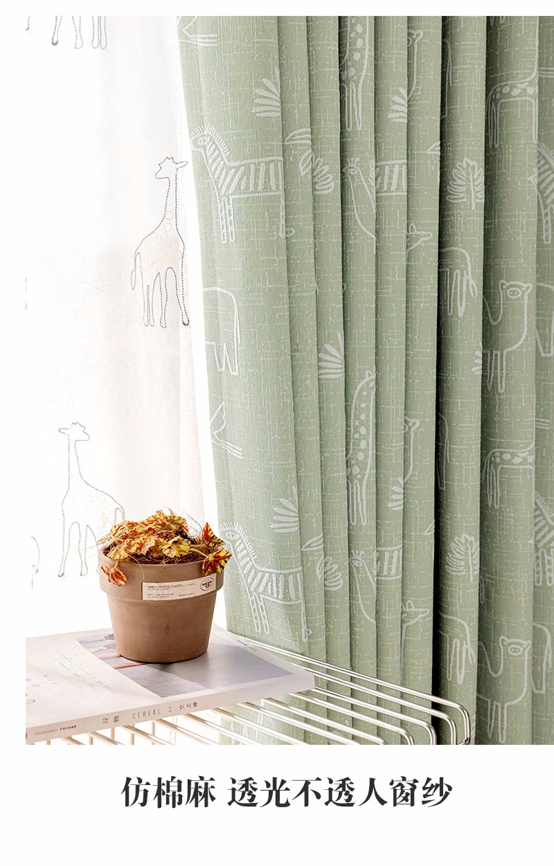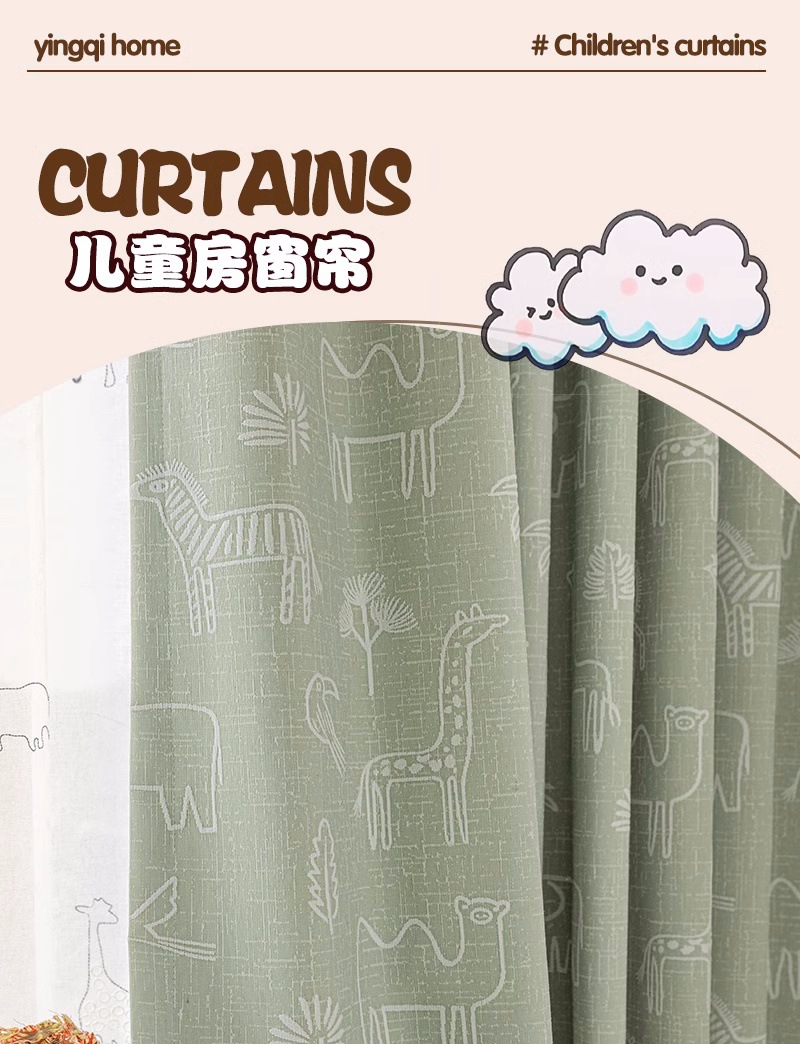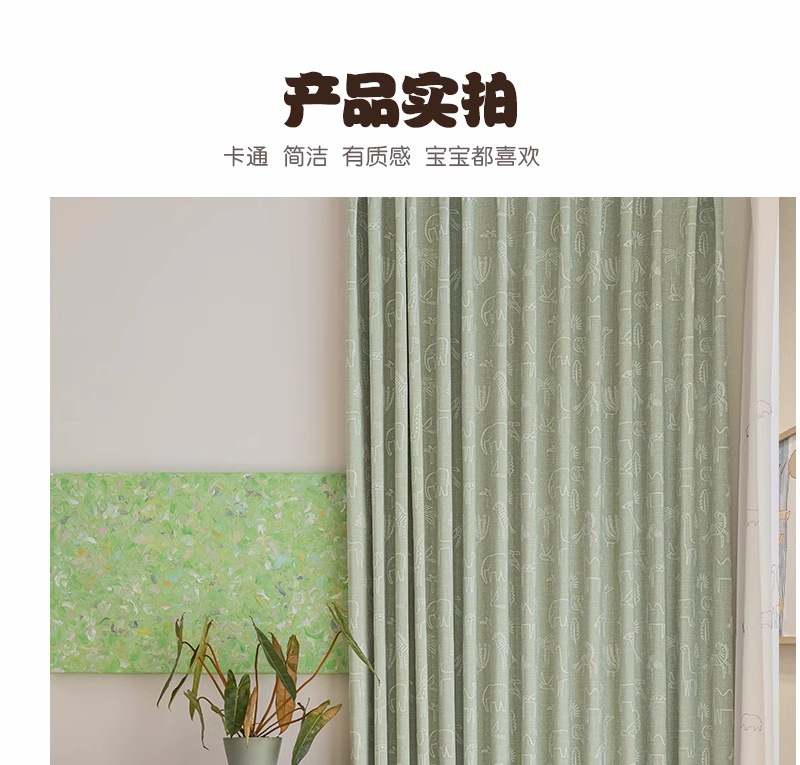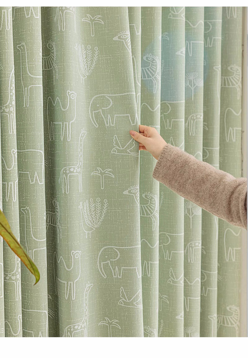 새로운 어린이 방 커튼 소년과 소녀 베이 창 침실 녹색 음영 원사 염색 자카드 만화 현대 커튼스토어 가기