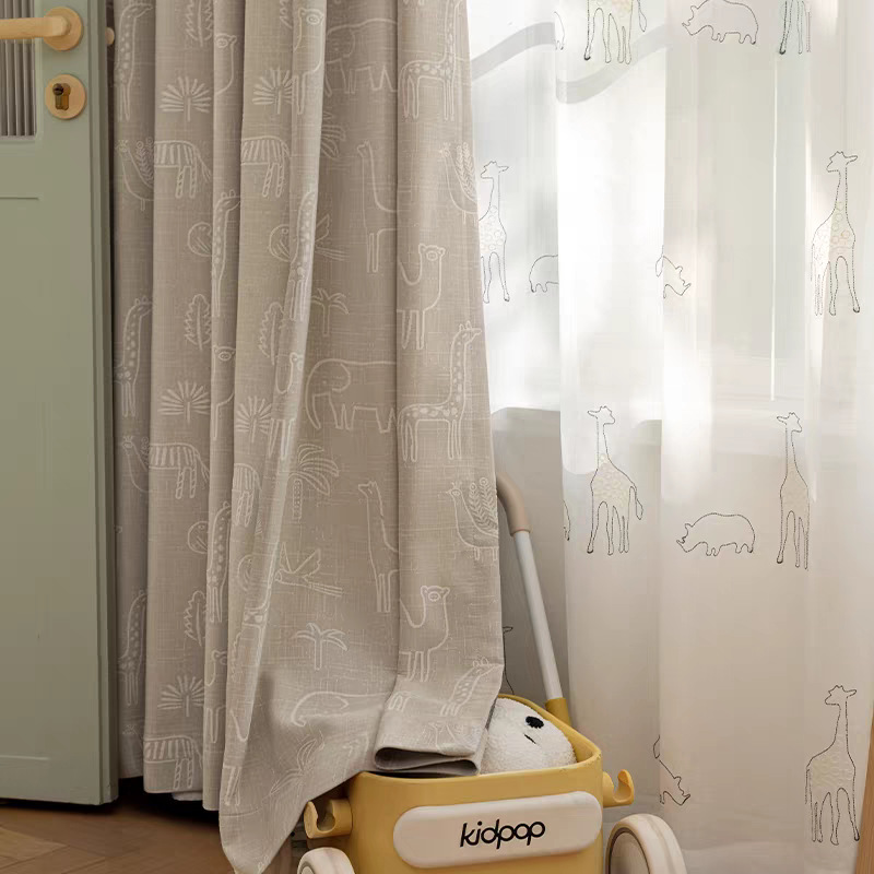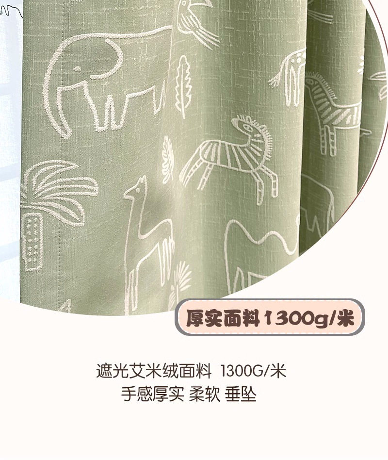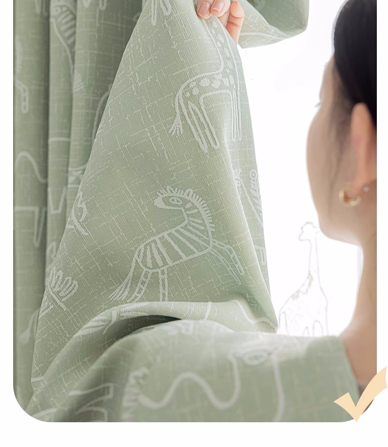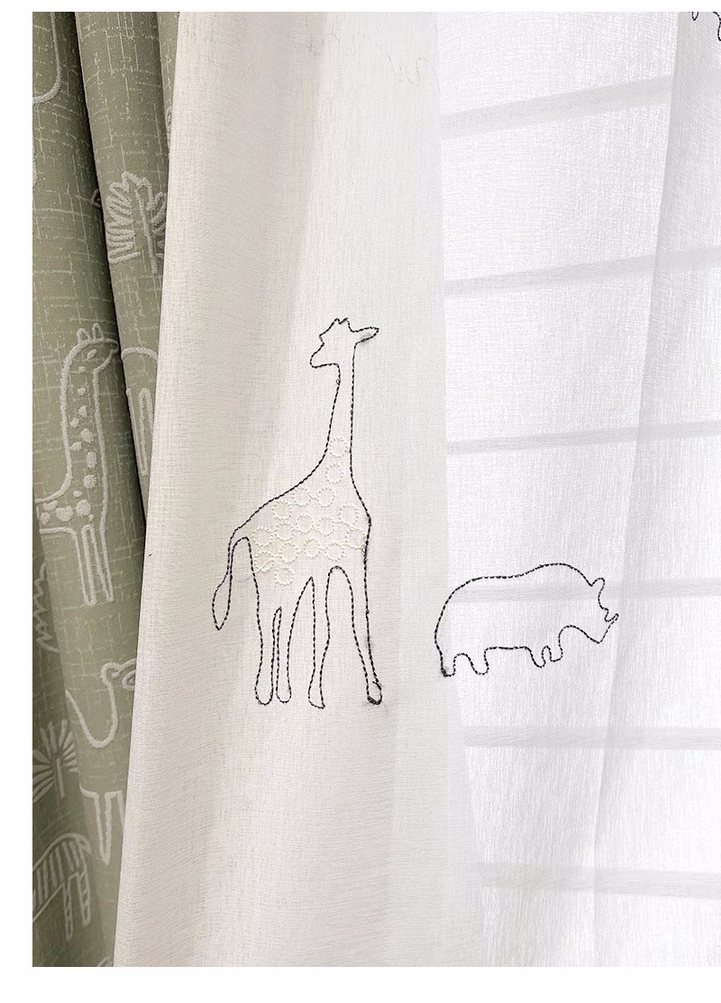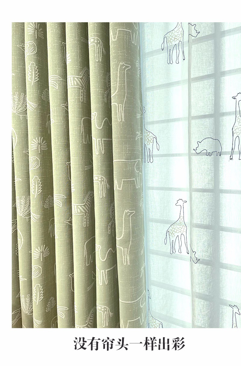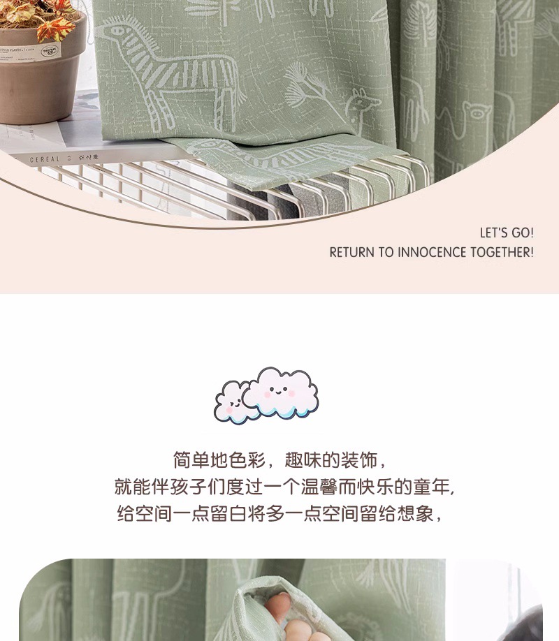 새로운 어린이 방 커튼 소년과 소녀 베이 창 침실 녹색 음영 원사 염색 자카드 만화 현대 커튼스토어 가기