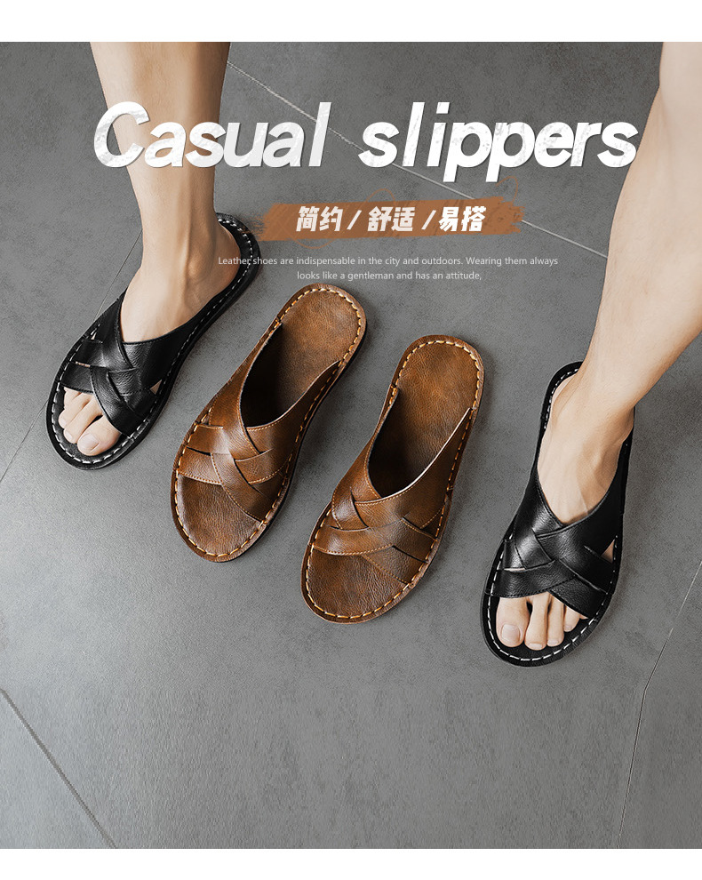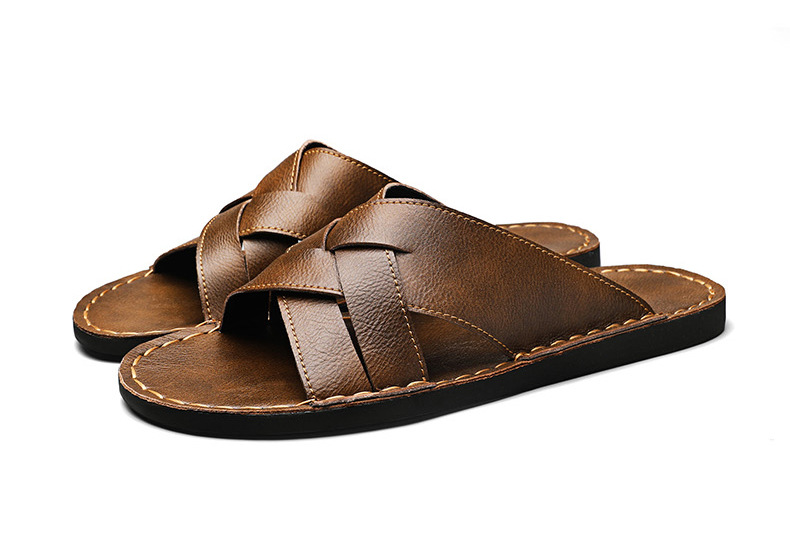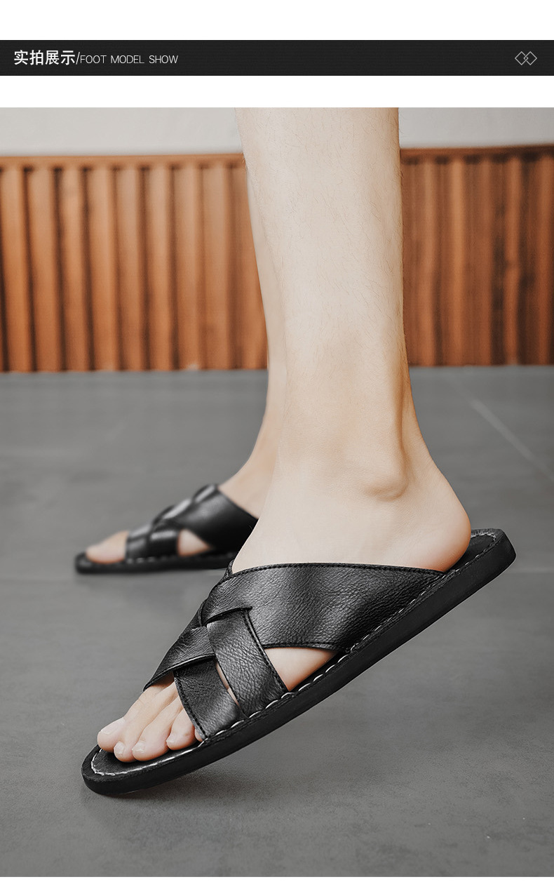국경 간 남성 슬리퍼 정품 가죽 슬리퍼 국경 간 손으로 꿰맨 남성 신발 정품 가죽 남성 캐주얼 슬리퍼 남성 신발 슬리퍼