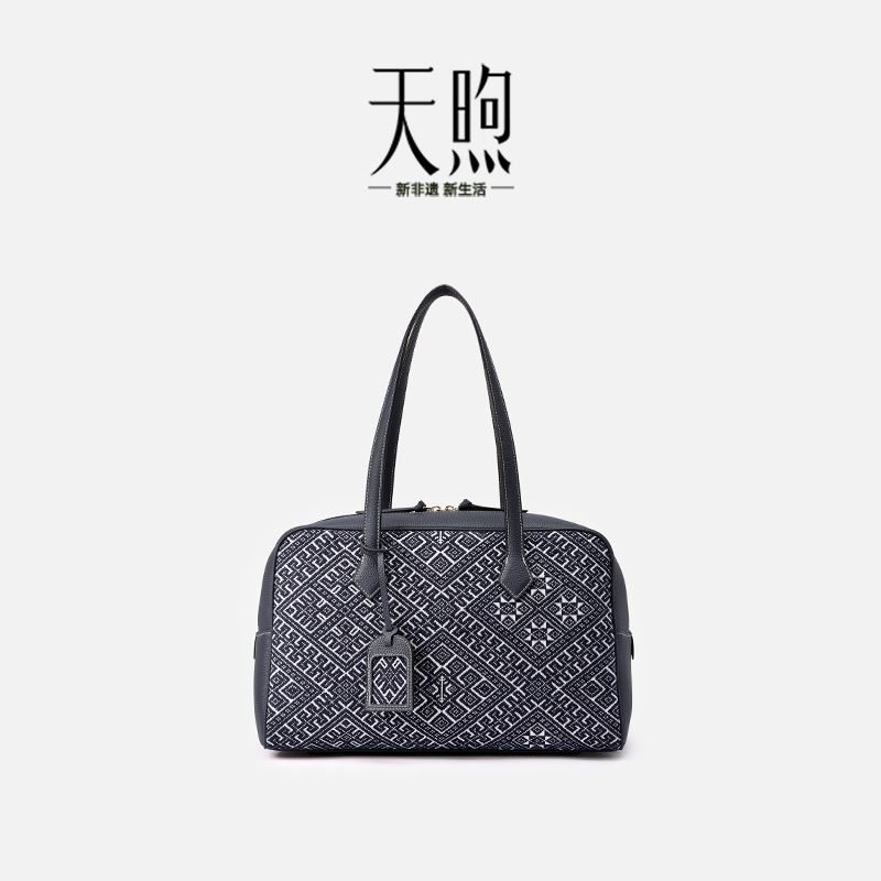 Tianxu 여성용 가방 2025 새로운 무형 문화 유산 장 브로케이드 핸드백 정품 가죽 가방 복고풍 어깨 크로스 바디 백 어머니 가방스토어 가기