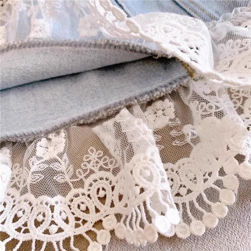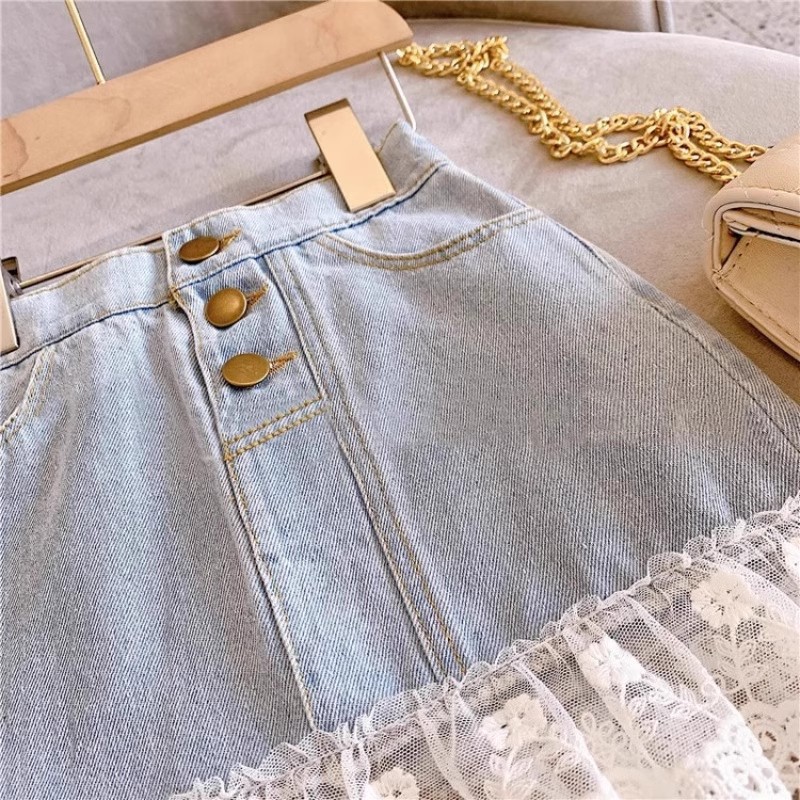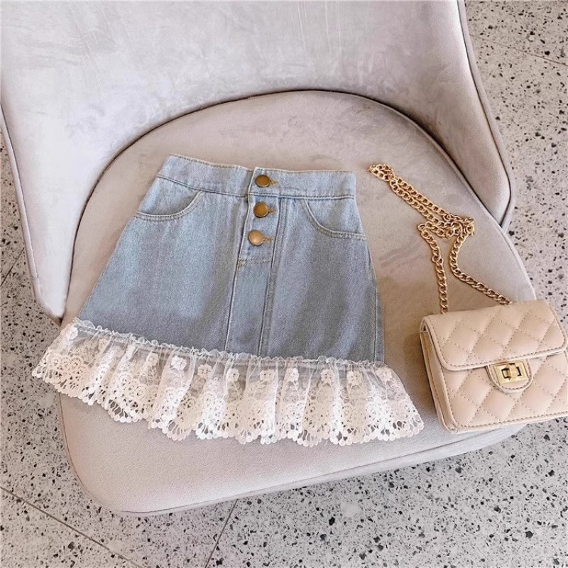 여름 소녀의 데님 스커트 서양식 어린이 피쉬 스커트 중소형 어린이 쇼트 스커트 소녀의 레이스 힙합 스커트