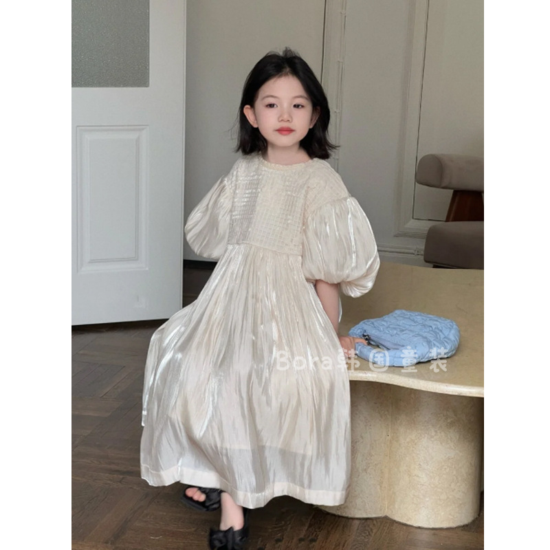 소녀 원피스 여름 2025 새로운 슈퍼 잘 생긴 기질 공주 원피스 어린이 퍼프 소매 프렌치 화이트 스커트