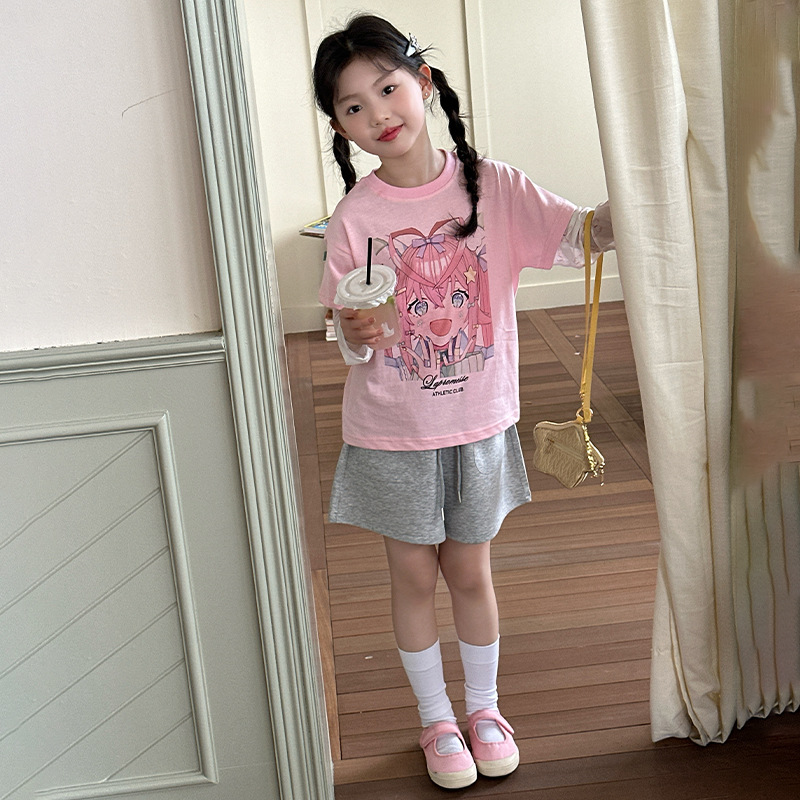 여아 여름 캐주얼 스포츠 반바지 2025 새로운 스타일 아동용 단색 느슨하고 가볍고 다재다능한 5부 바지 유행스토어 가기