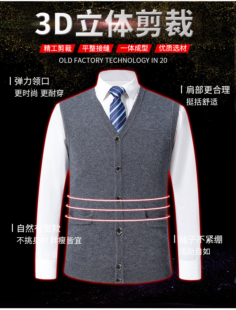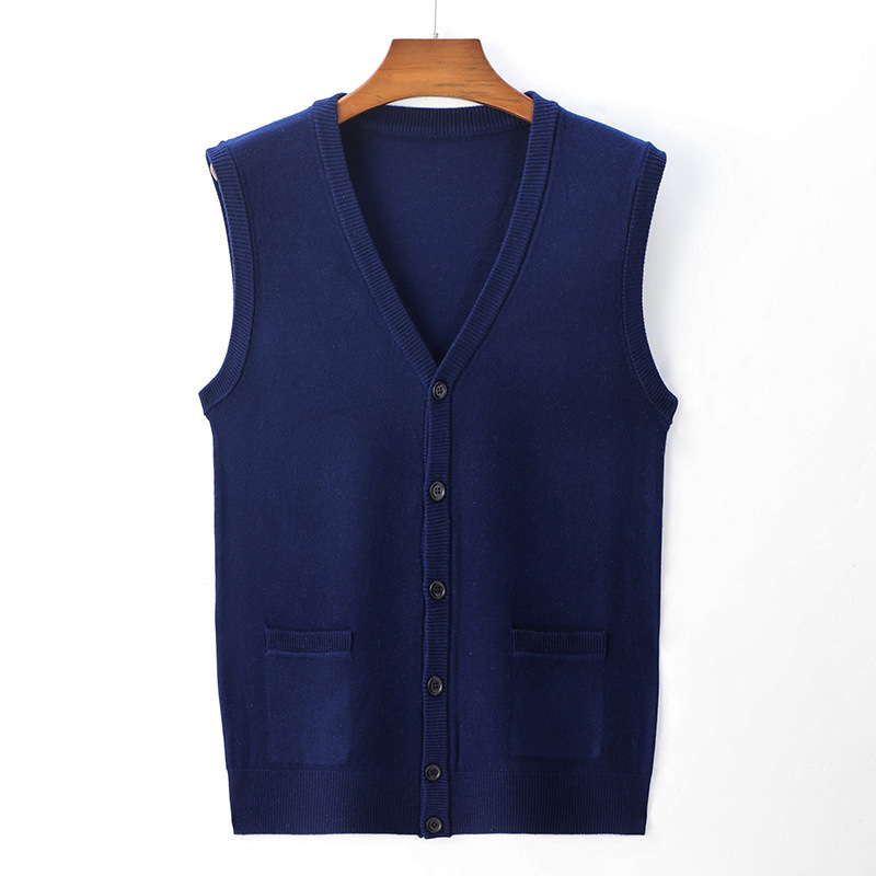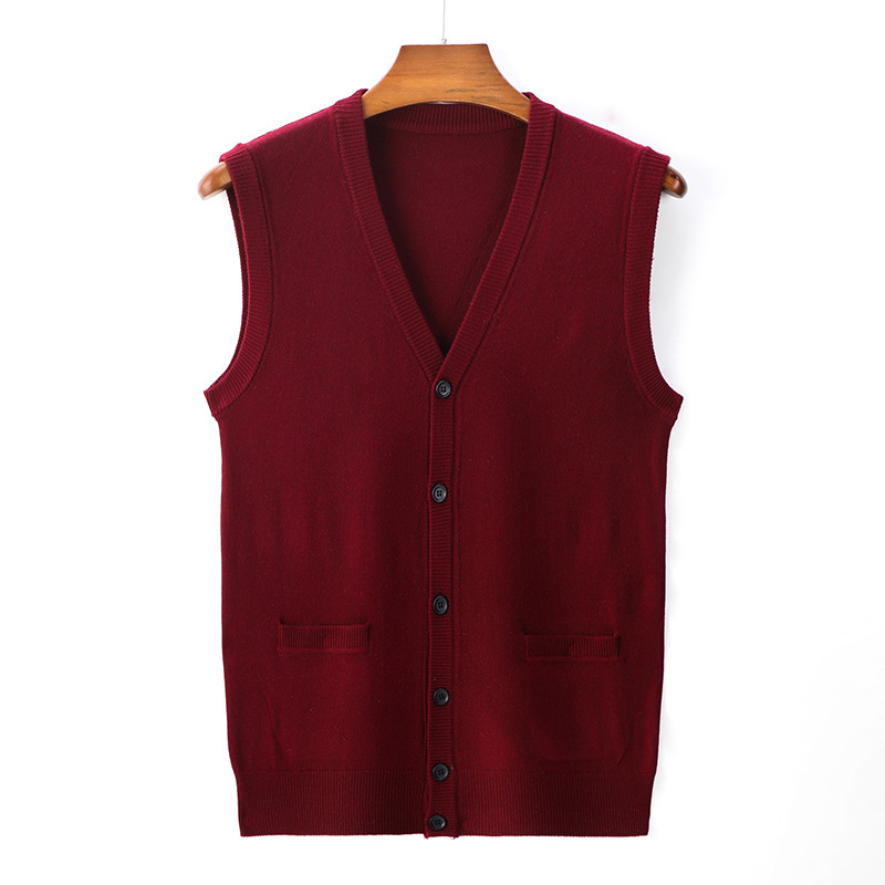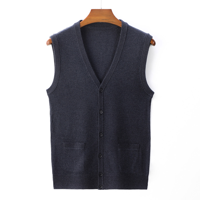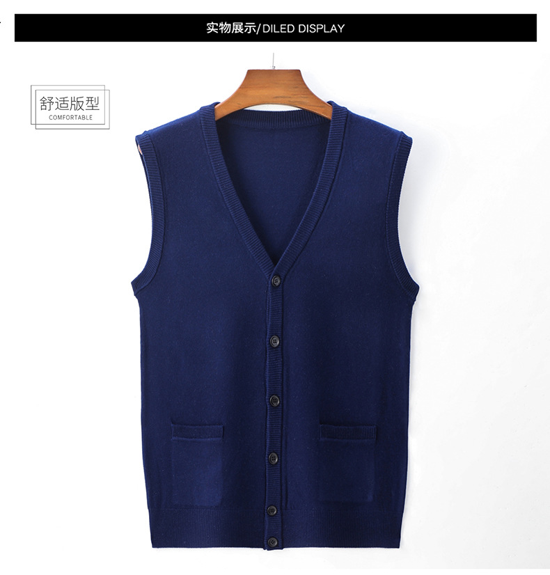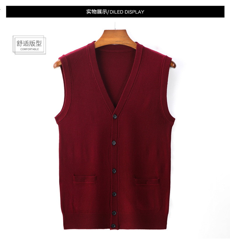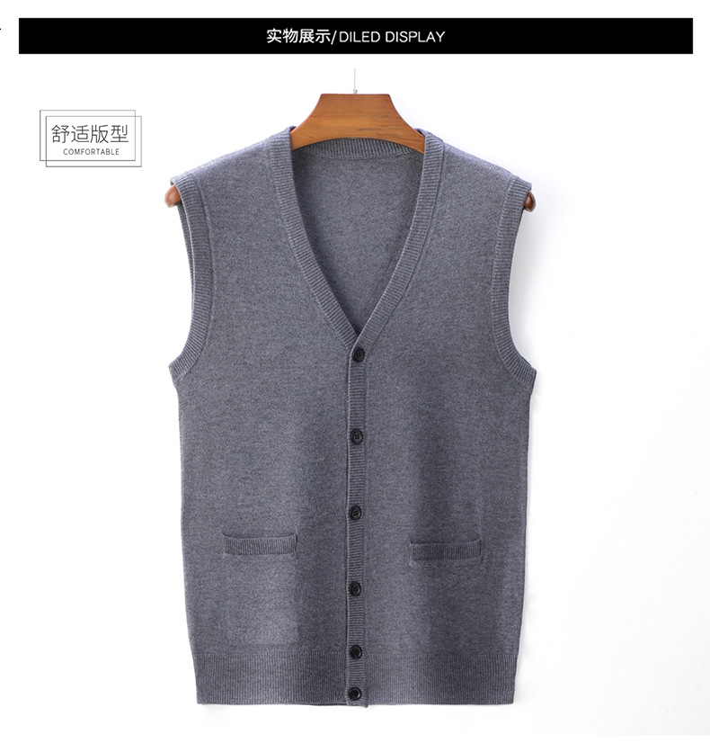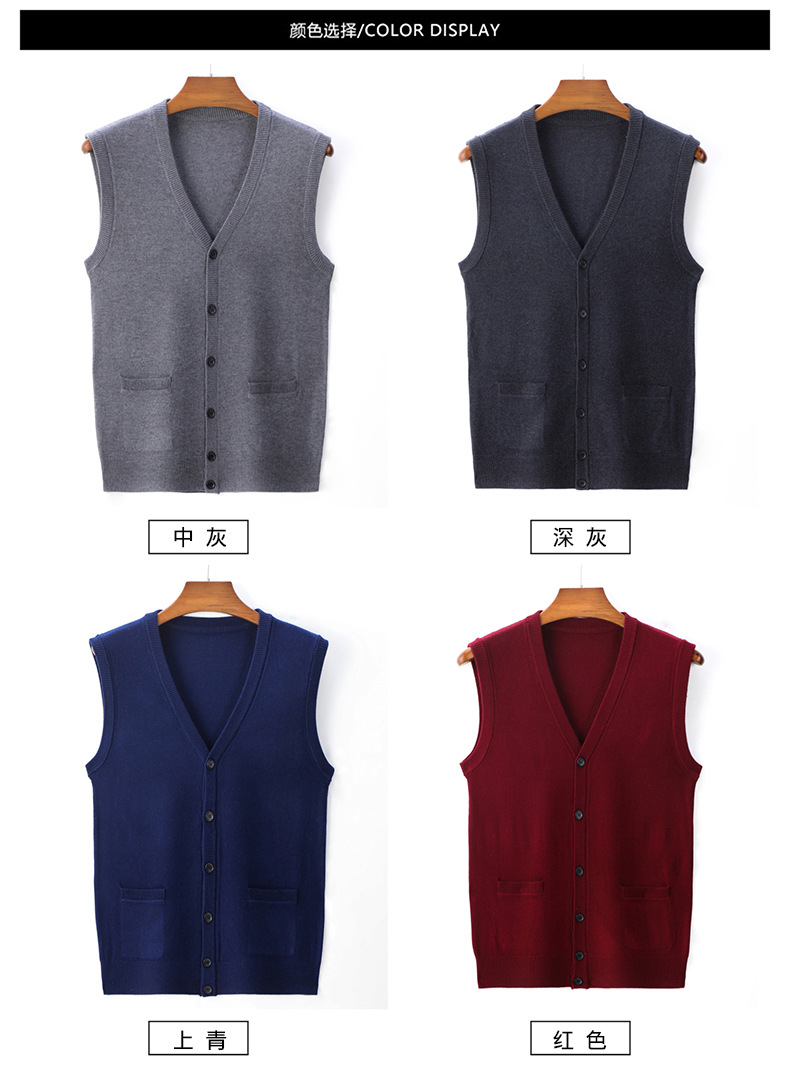 가을 신작 민소매 조끼 니트 가디건 남성 v 넥 중년 및 노인 봄, 가을 얇은 조끼 솔리드 컬러 울 코트