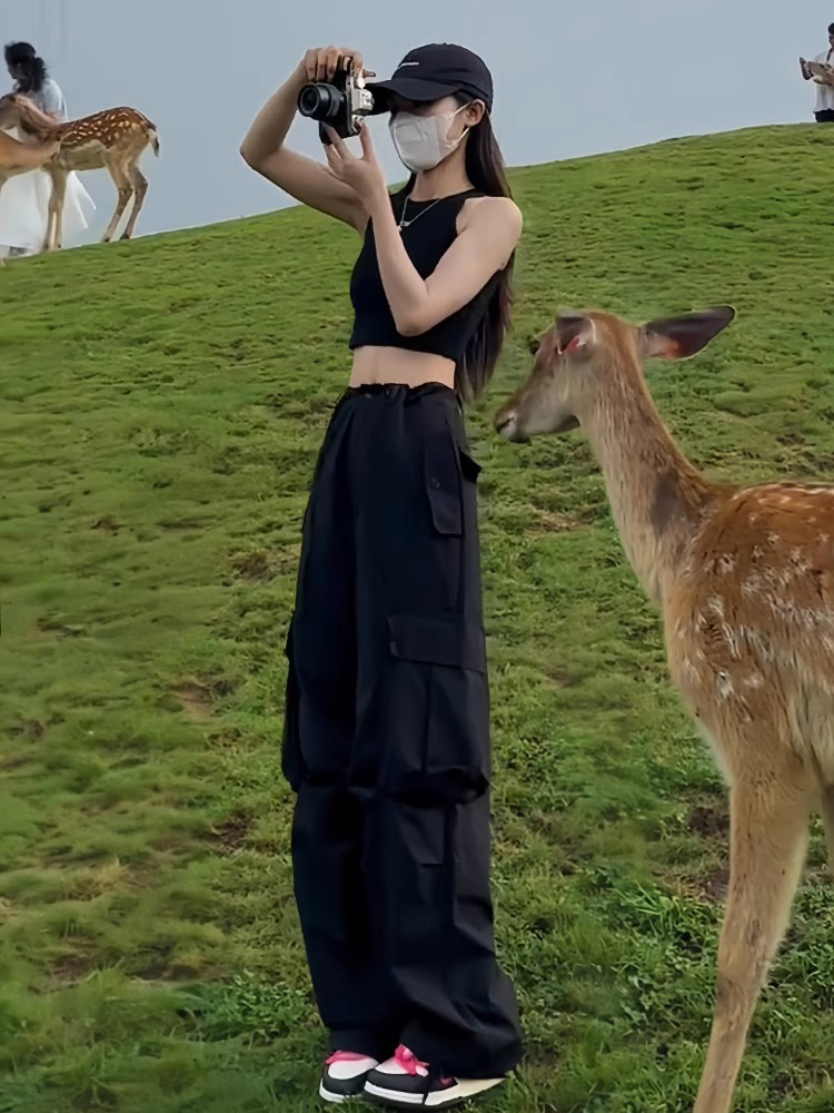 여성용 아메리칸 하이킹 작업복, 봄, 가을 하이 웨이스트 루즈한 소형 와이드 레그 아웃도어 속건성 여름 캐주얼 스포츠 바지스토어 가기