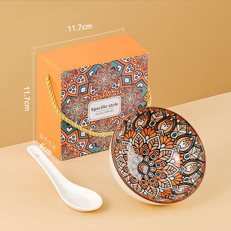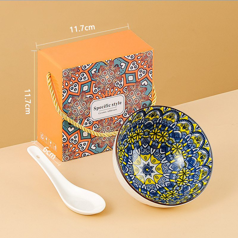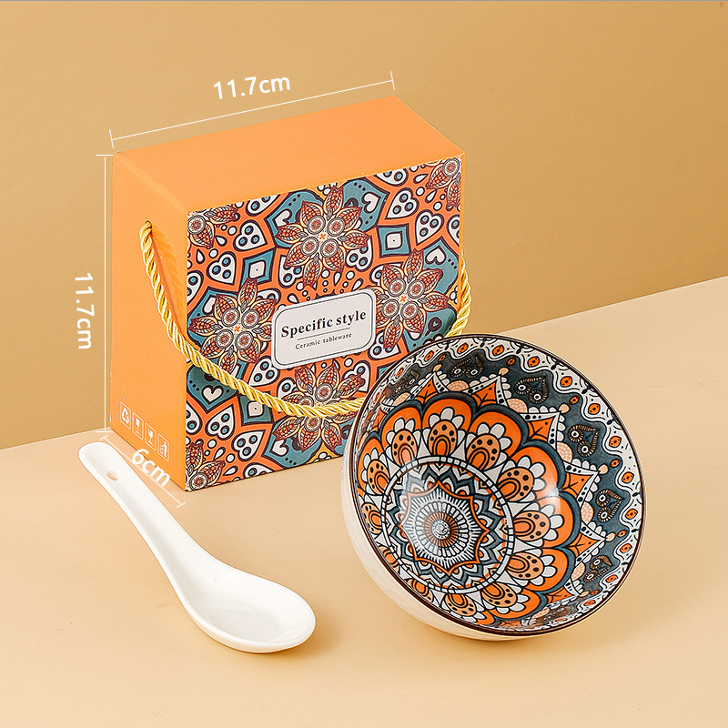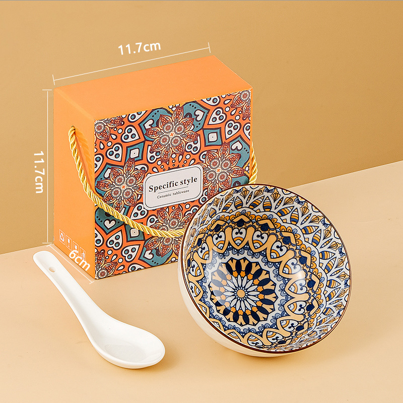 국경 간 유약 컬러 보헤미안 세라믹 그릇 밥 그릇 고급 식기 가정용 그릇 싱글 그릇 선물 상자 세트 도매스토어 가기