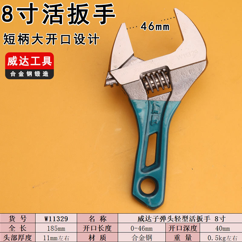 Weida 대형 오픈 렌치 짧은 핸들 조절 렌치 파이프 수리 도구 오픈 보드 가정용 욕실 라이브 보드스토어 가기