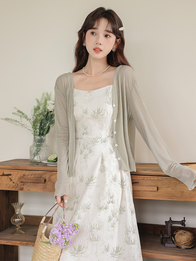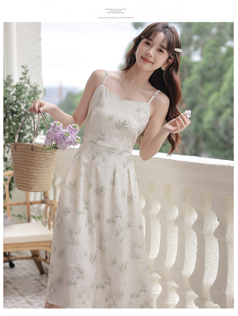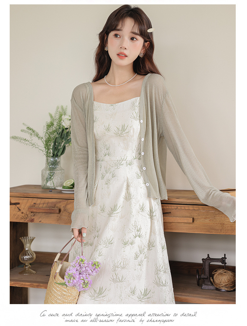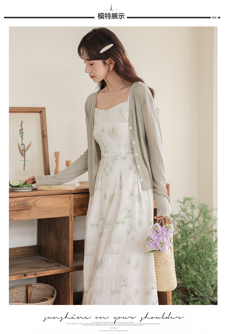 2025 여름 새로운 국가 스타일 새로운 중국 꽃 스타일 신선한 스타일 슬링 원피스 목도리 재킷 투피스 세트스토어 가기