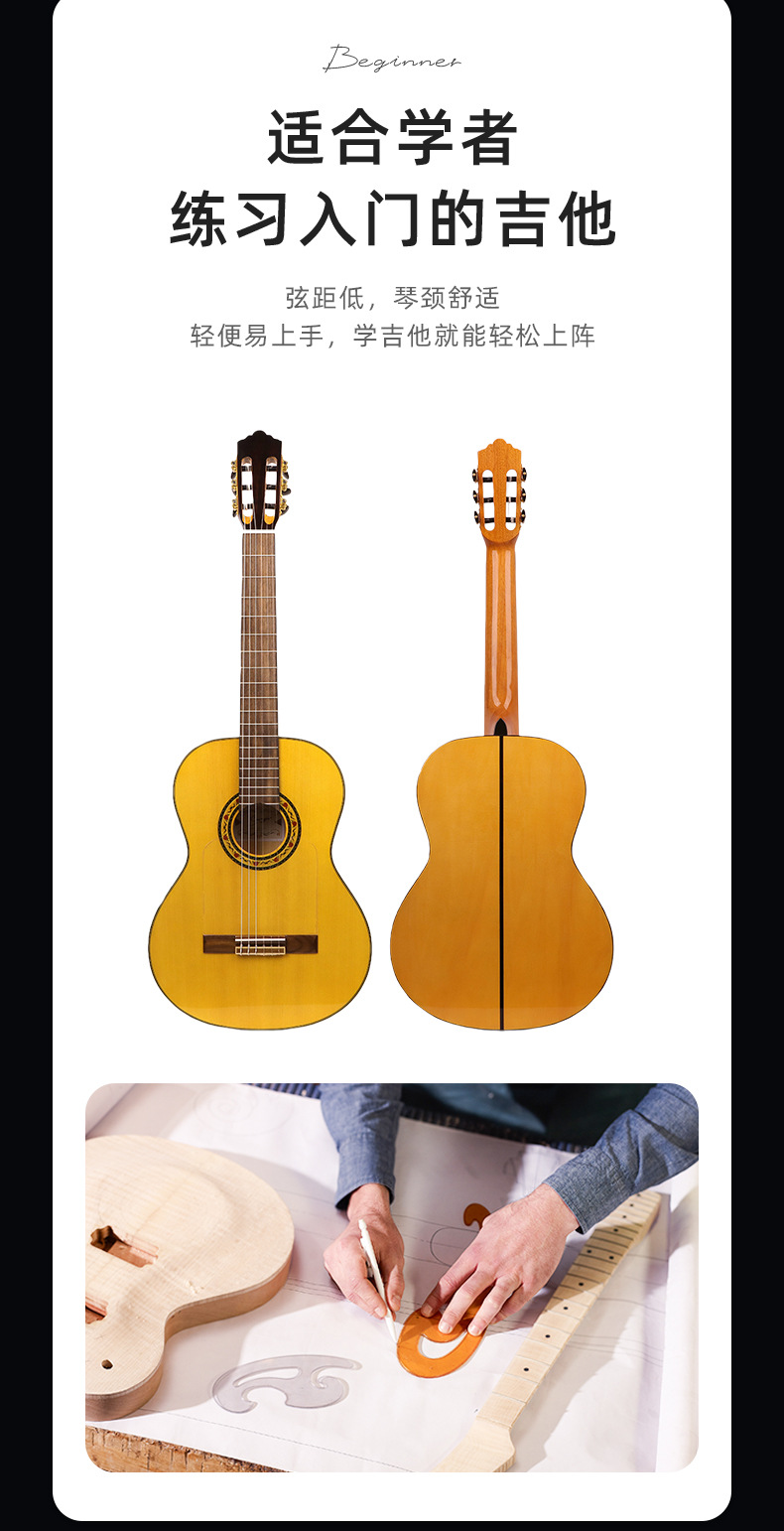 플라멩코 베니어 기타 목재 기타 하이 엔드 성능 등급 베니어 클래식 기타 기타 도매 스프루스스토어 가기
