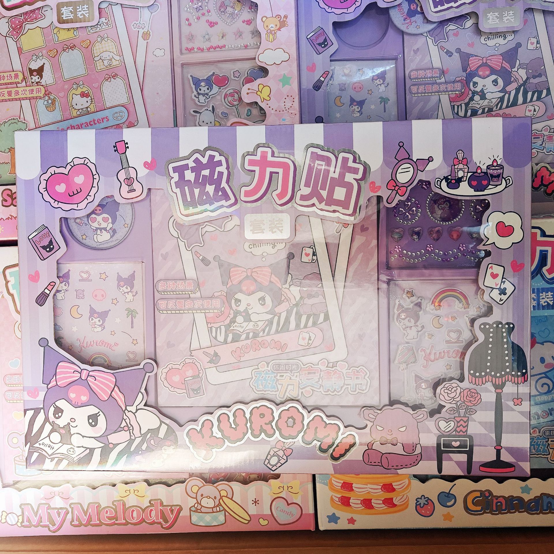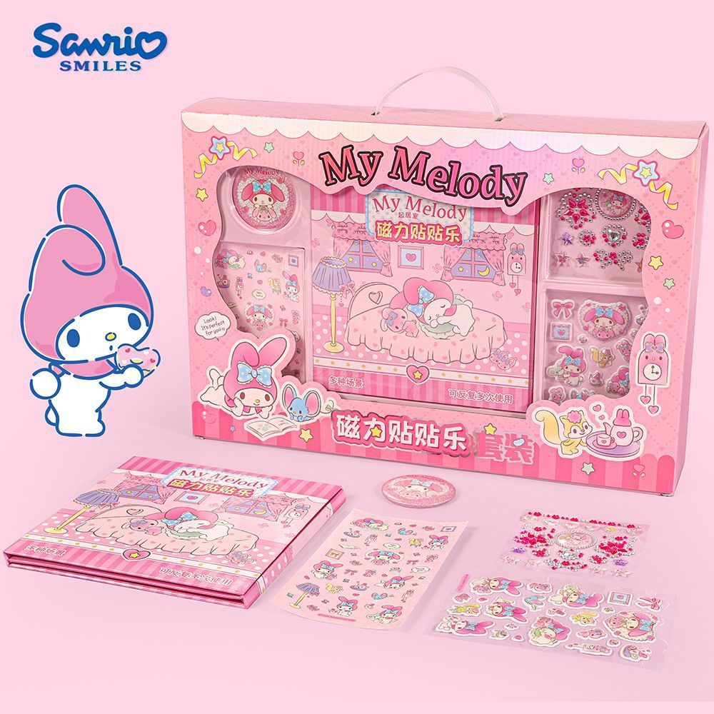 소녀와 어린이를위한 Sanrio 자석 스티커 조용한 책 보석 스티커 선물 상자 세트 Melody Coolomi 스티커